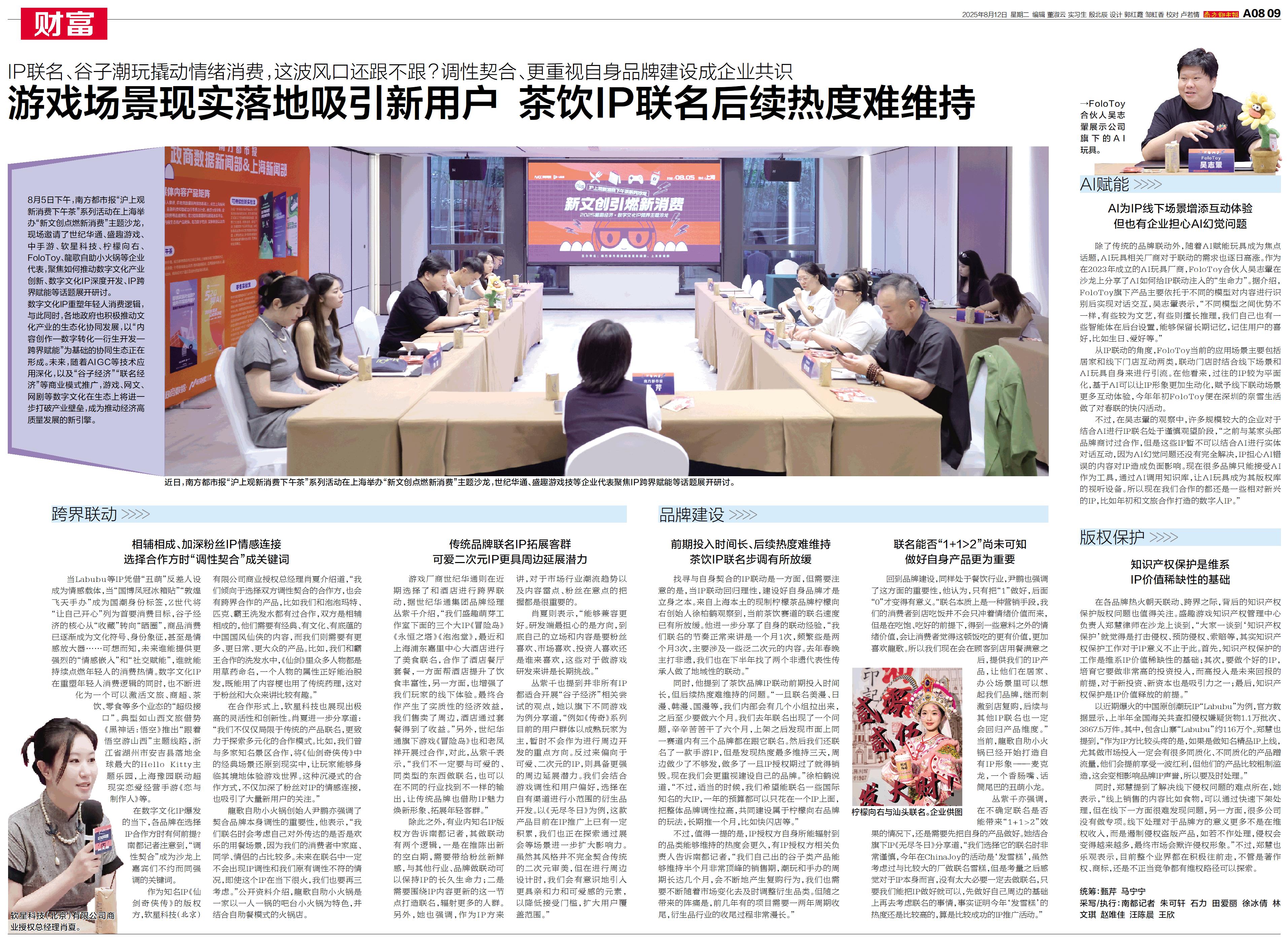 游戏场景现实落地吸引新用户 茶饮IP联名后续热度难维持