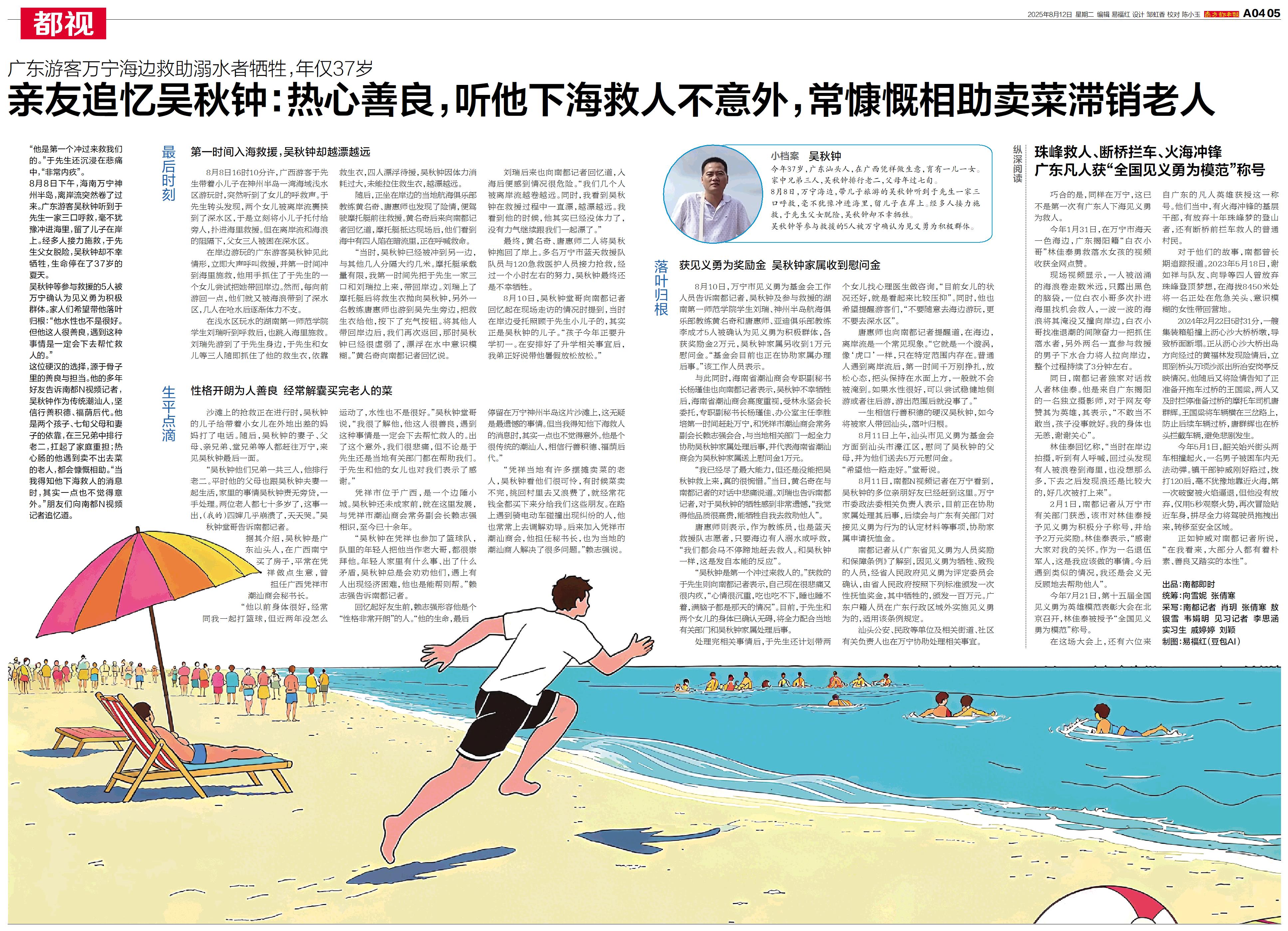 亲友追忆吴秋钟:热心善良,听他下海救人不意外,常慷慨相助卖菜滞销老人
