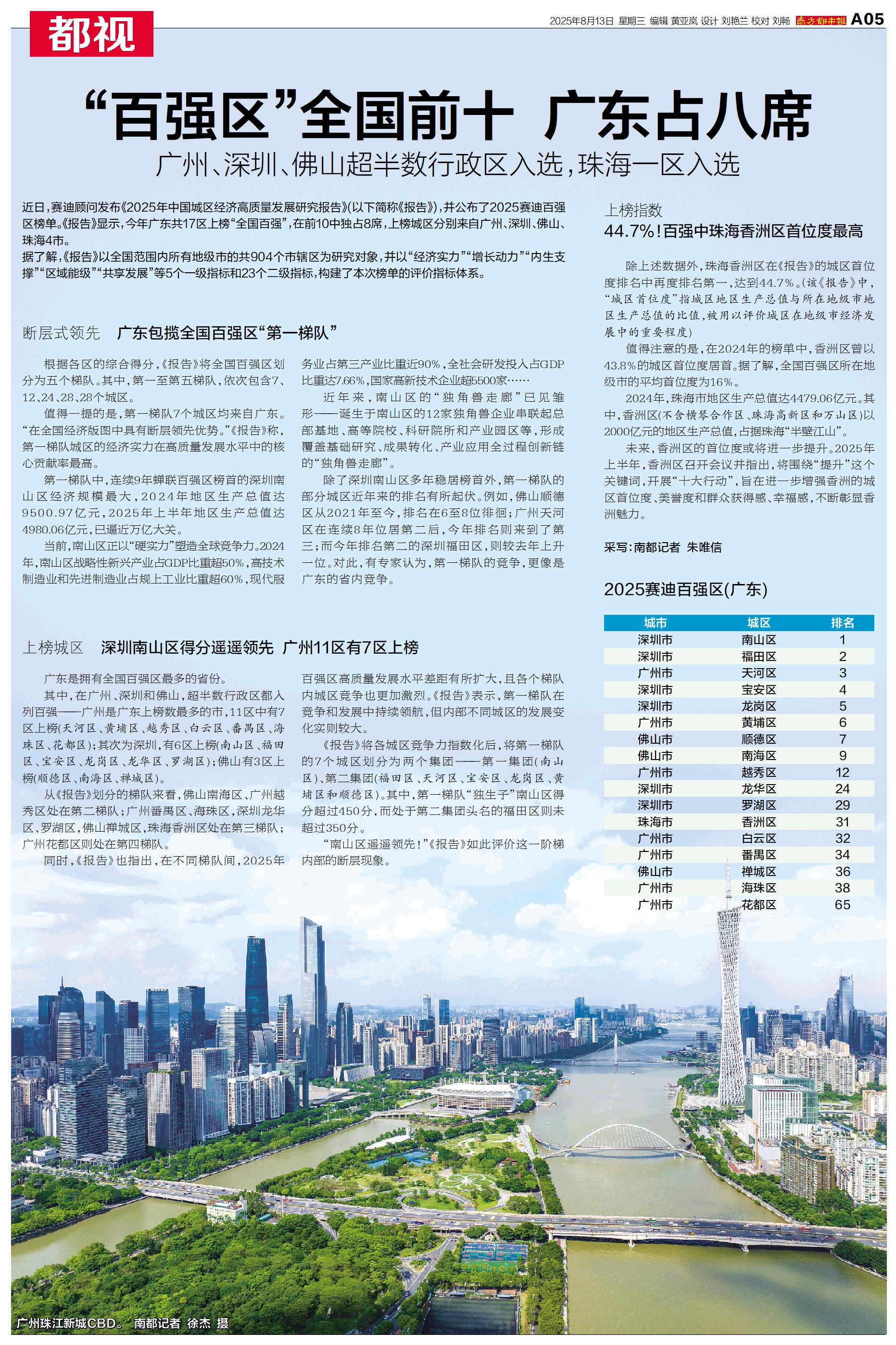 近日,赛迪顾问发布《2025年中国城区经济高质量发展研究报告》(以下简称《报告》),并公布了2025赛迪百强区榜单。