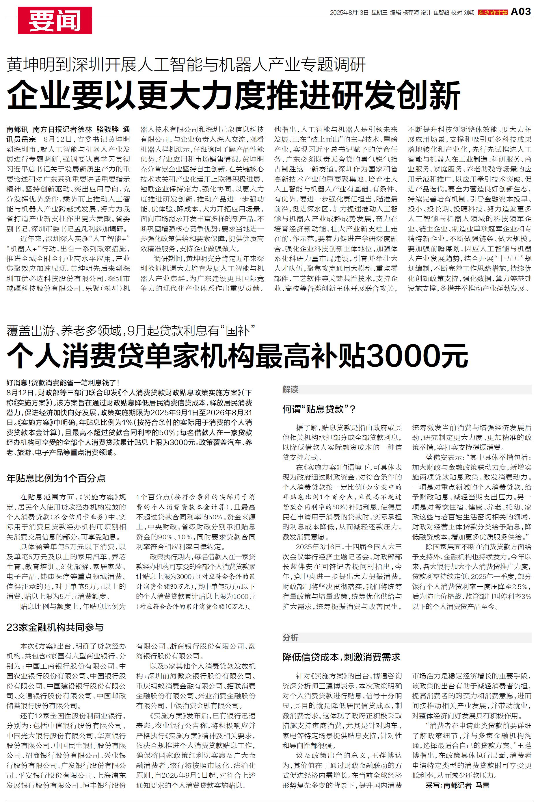 8月12日,省委书记黄坤明到深圳市,就人工智能与机器人产业发展进行专题调研。