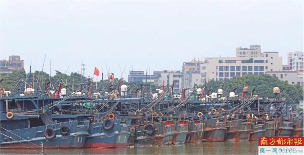 8月13日,广东汕头澄海区渔船回港避风。 新华社发