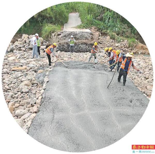 “我们水电四局南大水库扩建工程项目部,在接到南大水库库尾漫水桥损毁的消息后,第一时间组织人员、设备赶到现场。”中国水利水电第四局第四工程局有限公司南大水库扩建工程项目总承包部项目总工张明明告诉南都记者,大家冒雨为当地村民转移荔枝,希望将村民灾害损失降到最低。