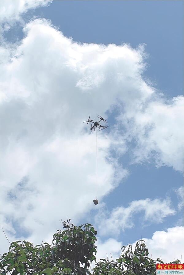 7日、8日,连续两日,南方电网广东广州从化供电局联合南网产业发展集团通航公司,调派多台无人机进场转运。无人机的起降点设置在距离断桥两端不远处的空地,村民们从山上运下荔枝后,无人机立即开始作业,在两岸来回飞行。