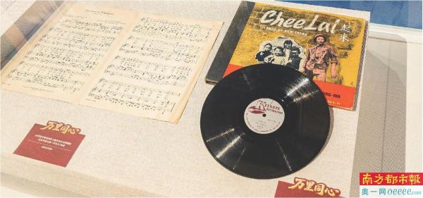 广州华侨博物馆展示的中英文版《义勇军进行曲》乐谱。