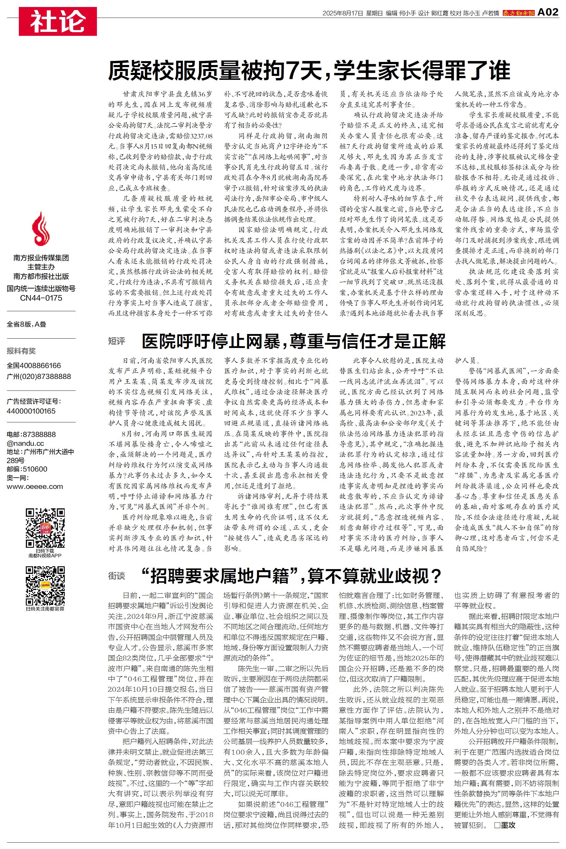 甘肃庆阳市宁县盘克镇36岁的邓先生,因在网上发布视频质疑儿子学校校服质量问题,被宁县公安局拘留7天。