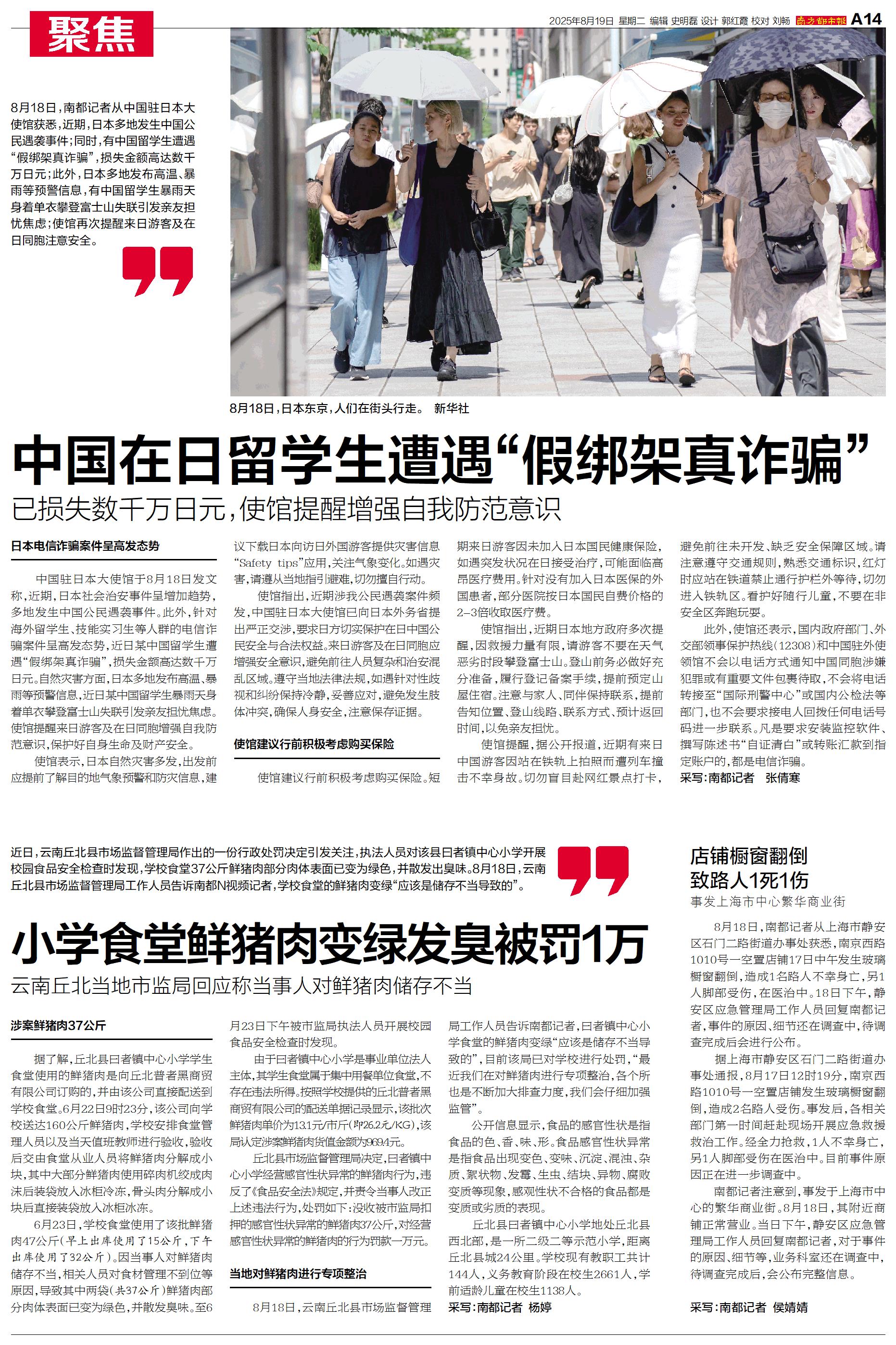 8月18日,南都记者从中国驻日本大使馆获悉,近期,日本多地发生中国公民遇袭事件。