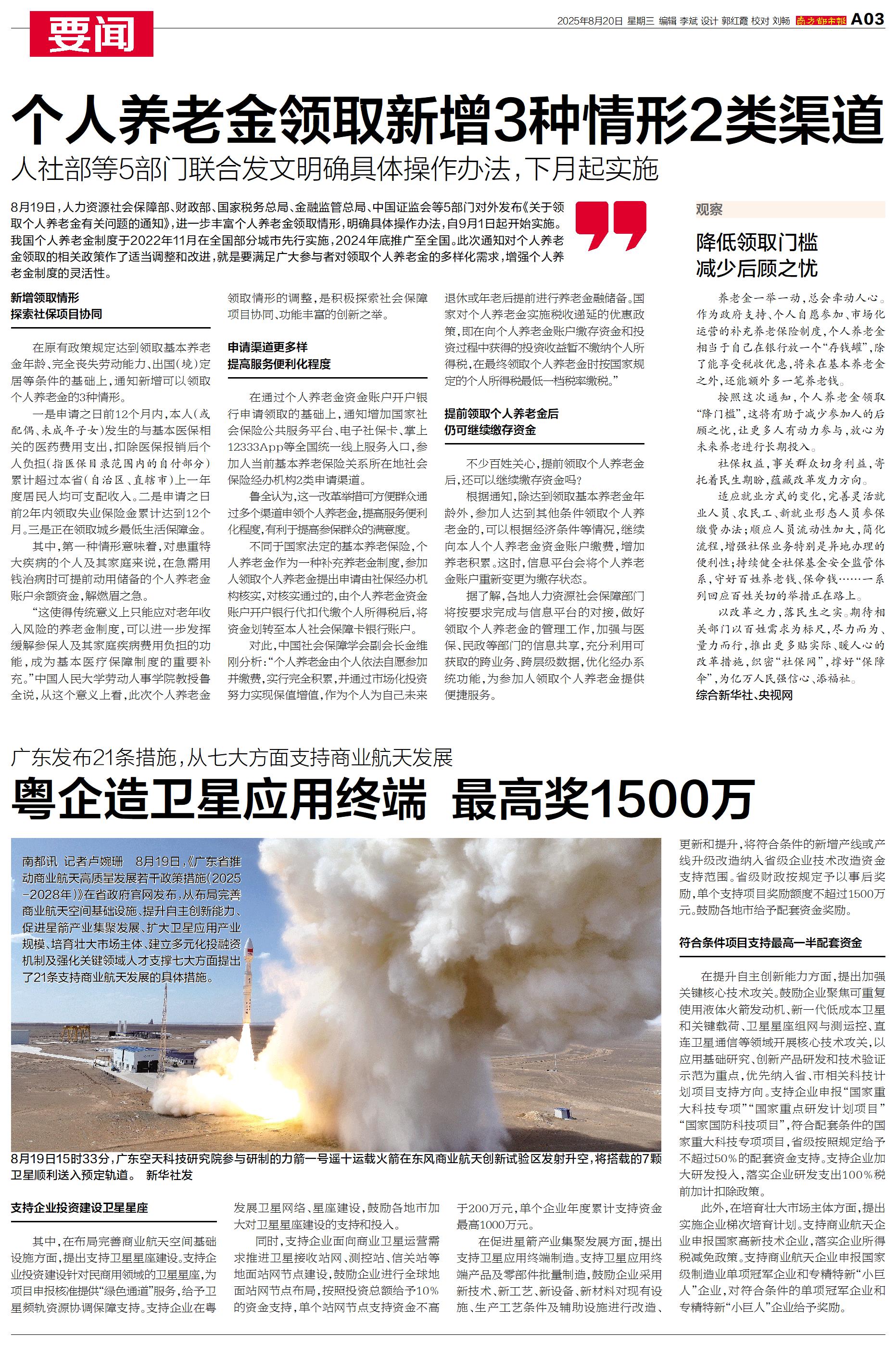 8月19日,《广东省推动商业航天高质量发展若干政策措施(2025-2028年)》在省政府官网发布。
