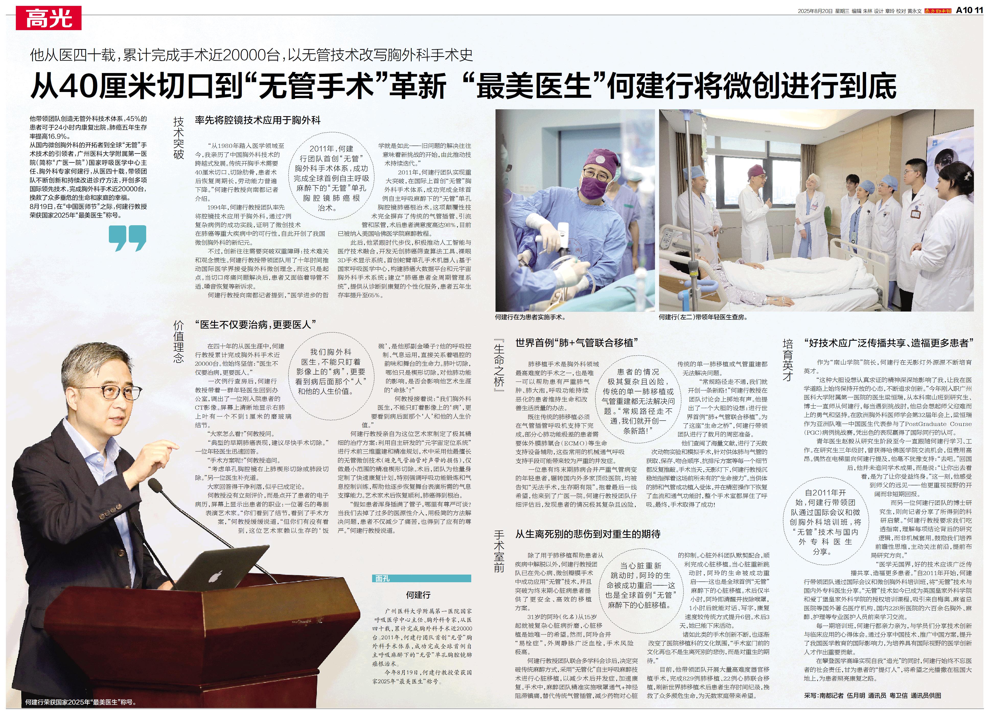 从40厘米切口到“无管手术”革新 “最美医生”何建行将微创进行到底
