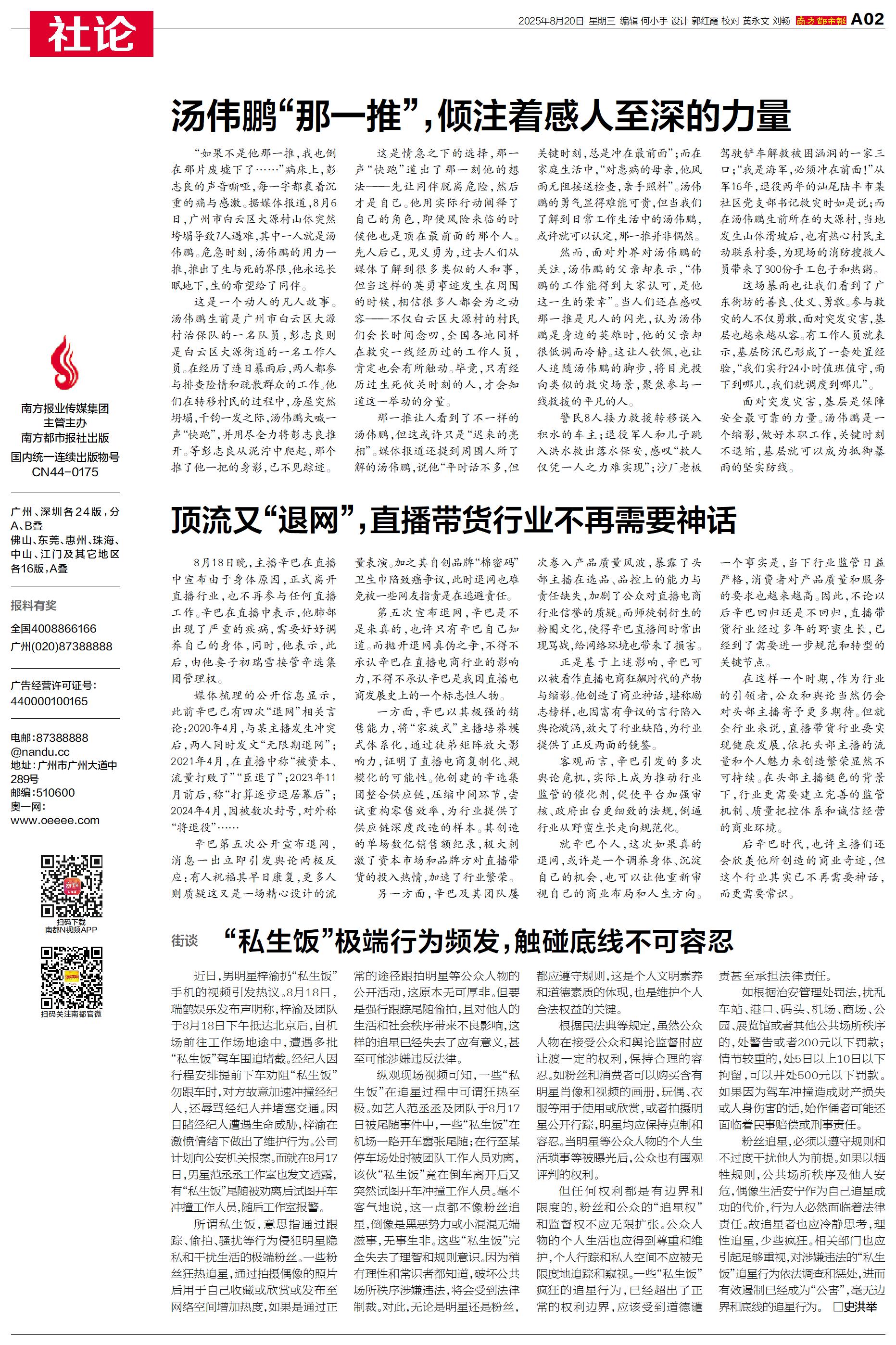 面对突发灾害,基层是保障安全最可靠的力量。汤伟鹏是一个缩影,做好本职工作,关键时刻不退缩,基层就可以成为抵御暴雨的坚实防线。
