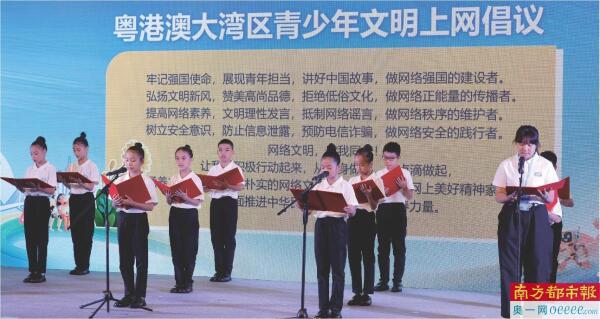 粤港澳三地大中小学生代表共同宣读文明上网倡议。