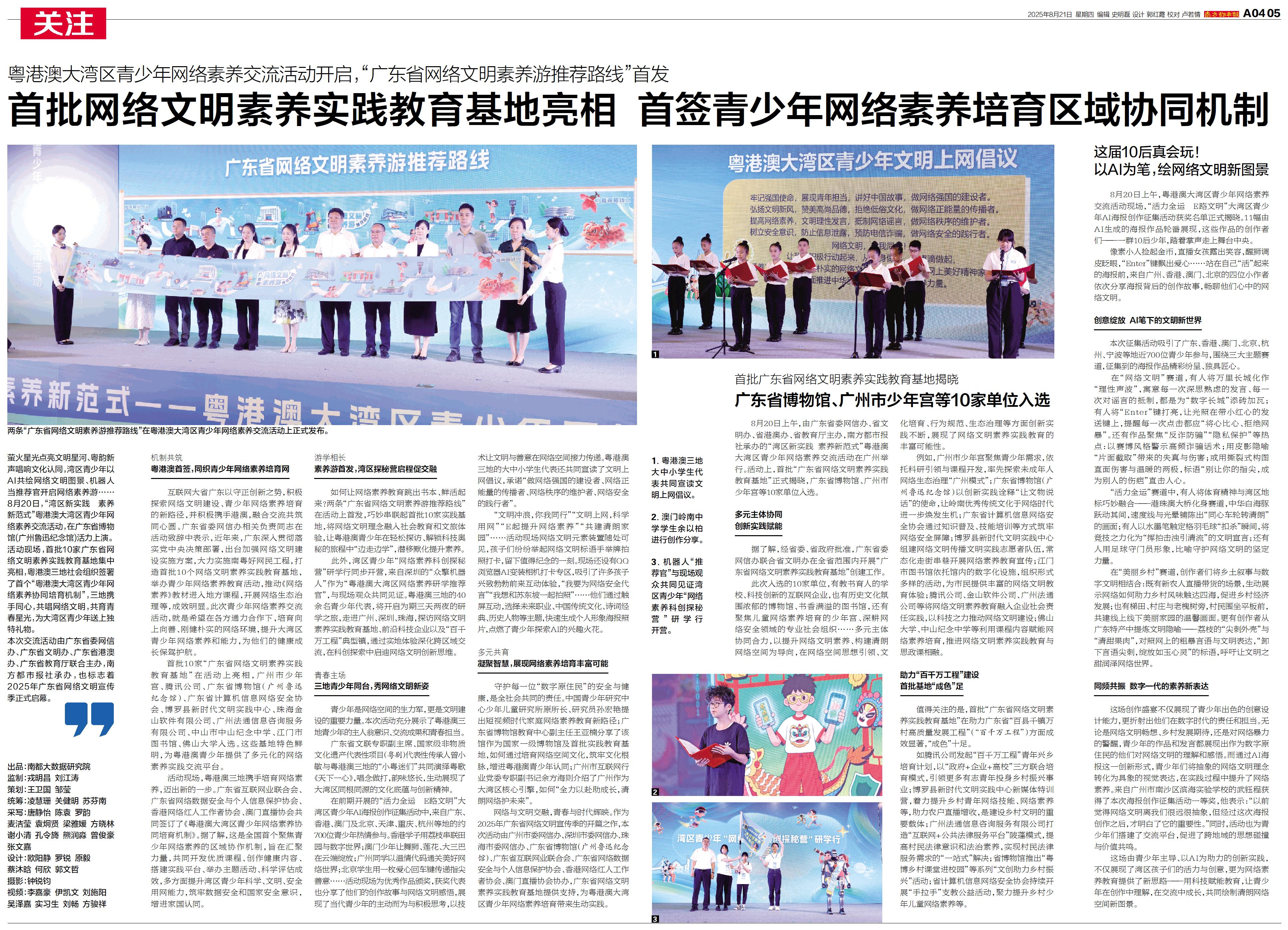 8月20日,“湾区新实践 素养新范式”粤港澳大湾区青少年网络素养交流活动,在广东省博物馆(广州鲁迅纪念馆)活力上演。