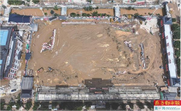 6月25日在贵州榕江拍摄的遭受洪水袭击的村超球场。 新华社发