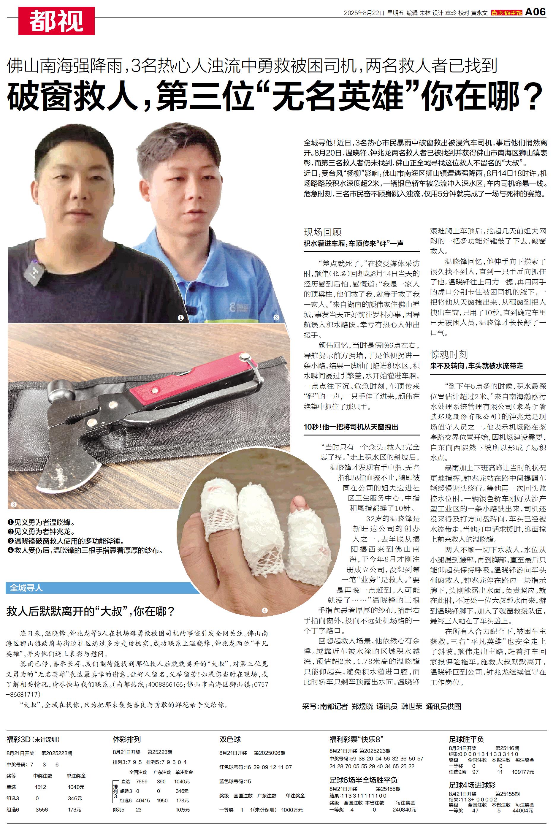 全城寻他!近日,3名热心市民暴雨中破窗救出被浸汽车司机,事后他们悄然离开。