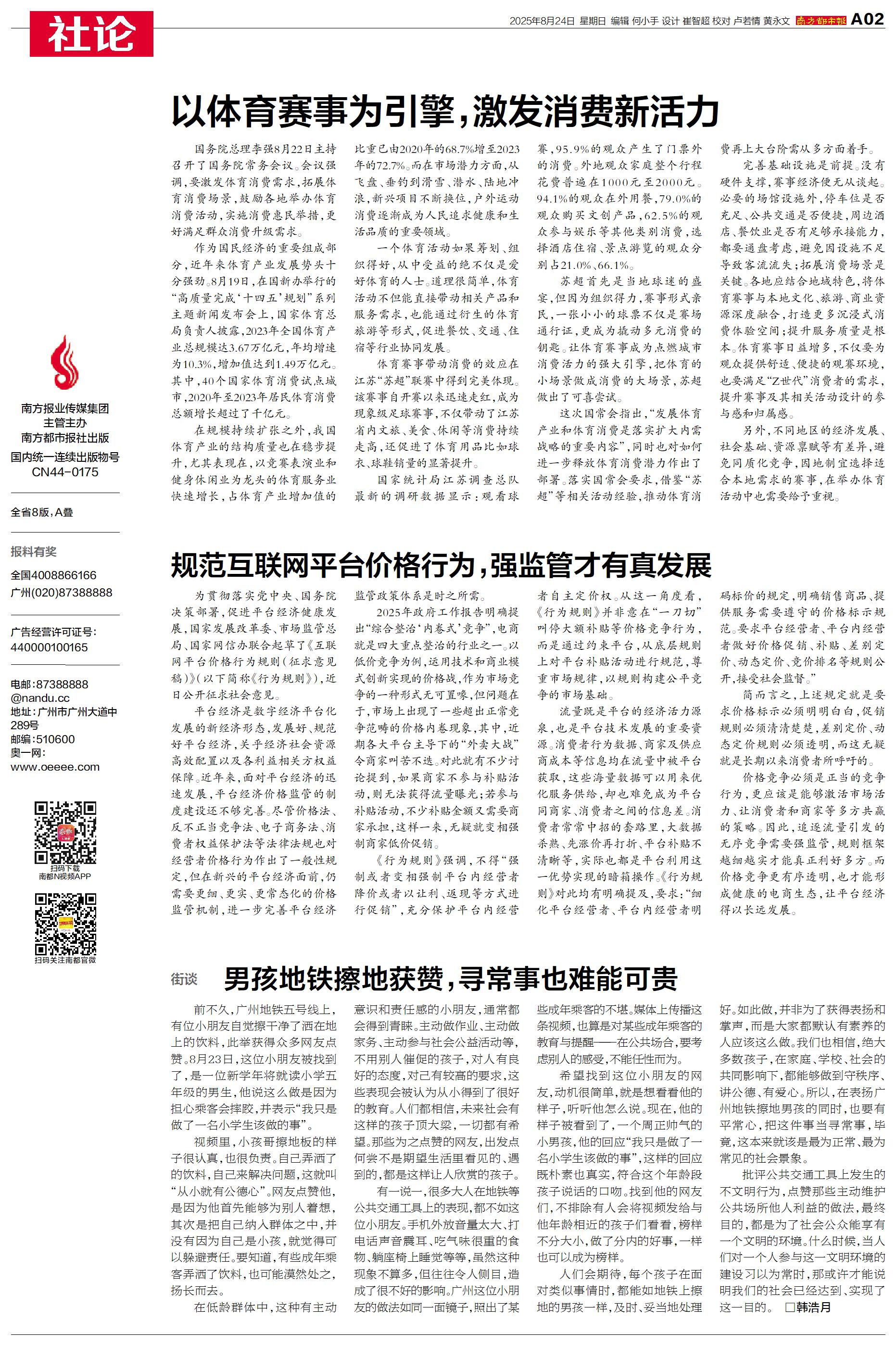 前不久,广州地铁五号线上,有位小朋友自觉擦干净了洒在地上的饮料,此举获得众多网友点赞。