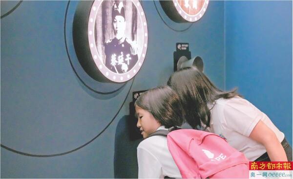 研学青少年在唐家古镇参观珠海留学文化馆,在“时空电讯”体验区聆听先辈“来信”。