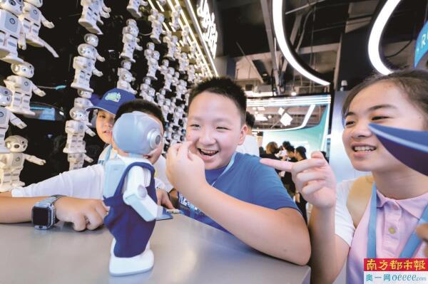 在深圳优必选,粤港澳少年们纷纷给小机器人“悟空”下发指令:跳起来、原地坐下、做一个深蹲,看到“悟空”丝毫没被难倒,流利地完成任务,现场可谓“哇”声一片。孩子们凑到不同机器人面前,看它们秀“绝活”,有能陪老人聊天、帮家长带娃、帮做家务的家居机器人,有能在展厅引路、讲解的机器人,还有颇受现场孩子们欢迎的智能猫砂盆、智能除草机。“科技犹如一双双隐形的手,把生活中琐碎的皱褶抚平。”来自广东的陈思言这样感叹。