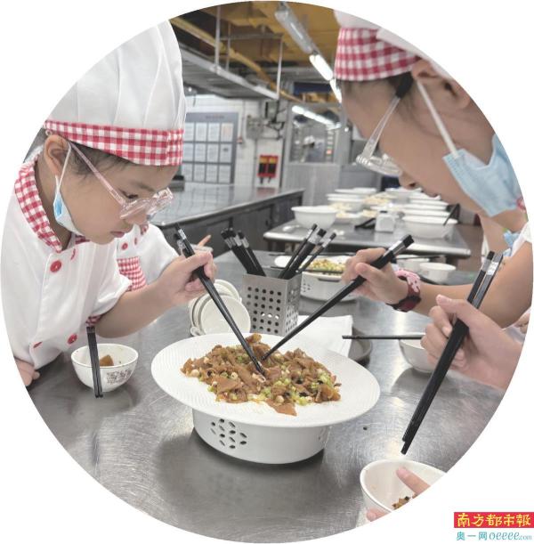 今年暑期,中国大酒店还联合广州博物馆,开启“消失的名菜”研学工坊。自2020年“消失的名菜”复刻民国时期广州名菜以来,今年已进入第五季。在菜式研发前,主办方将部分文物菜谱信息输入到AI中,生成了一些富有想象力的“消失的名菜”。如今,这份创新探索已融入到研学课堂。广州博物馆研学导师现场指导,无论是家常美味,还是“赛博岭南”料理,都可在孩子们的创意中诞生。