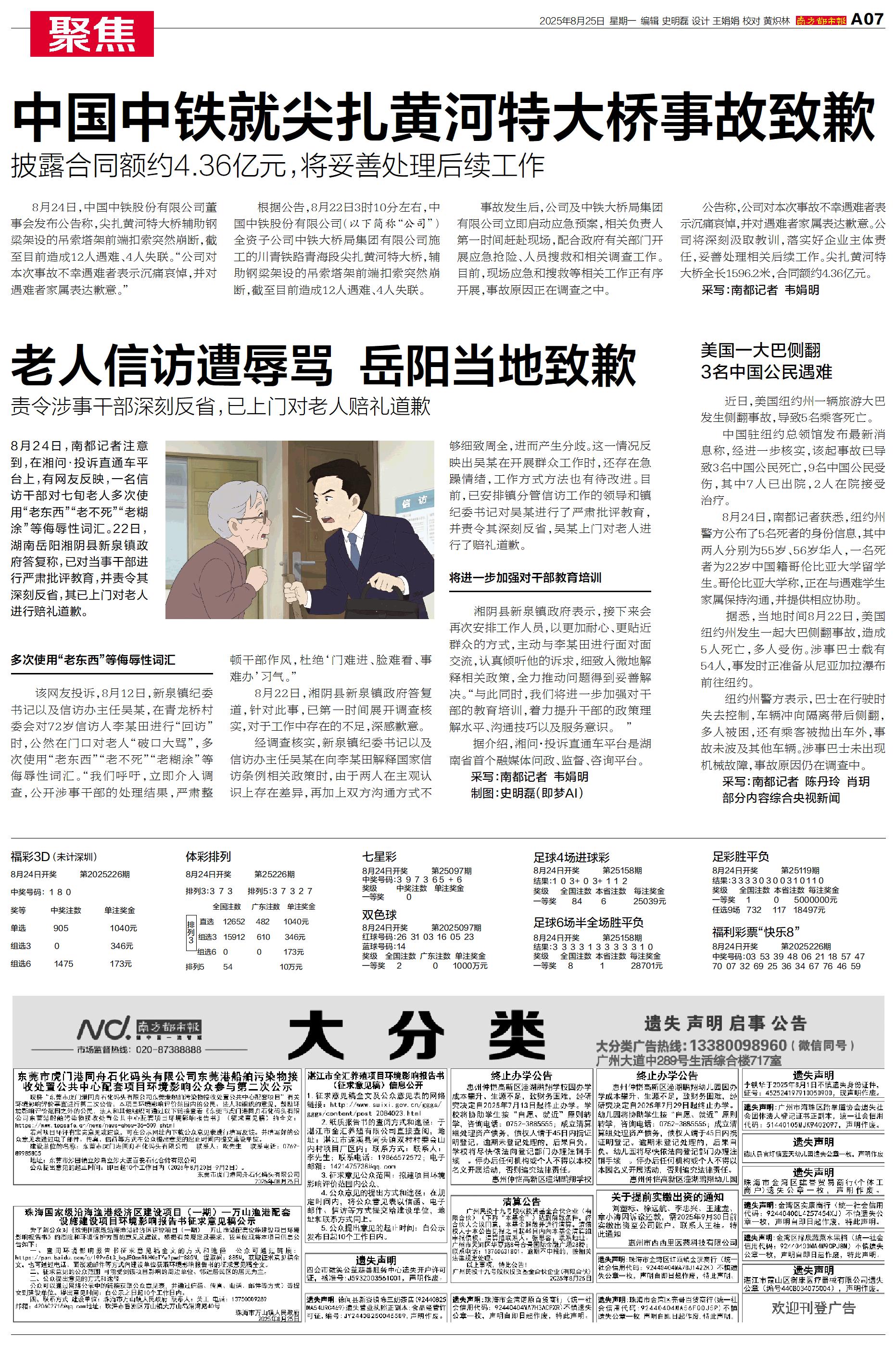 8月24日,中国中铁股份有限公司董事会发布公告称,尖扎黄河特大桥辅助钢梁架设的吊索塔架前端扣索突然崩断,截至目前造成12人遇难、4人失联。
