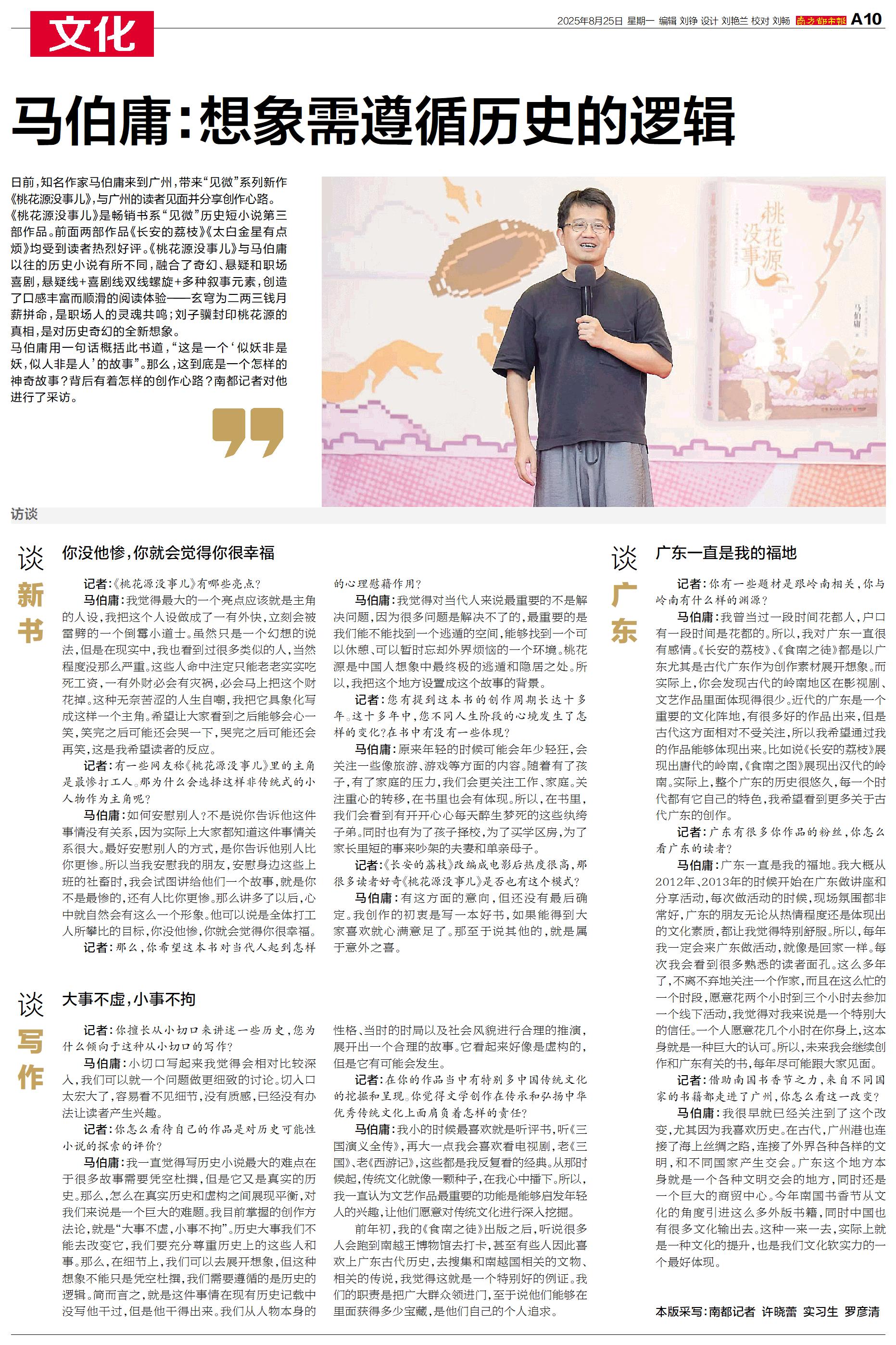 日前,知名作家马伯庸来到广州,带来“见微”系列新作《桃花源没事儿》,与广州的读者见面并分享创作心路。