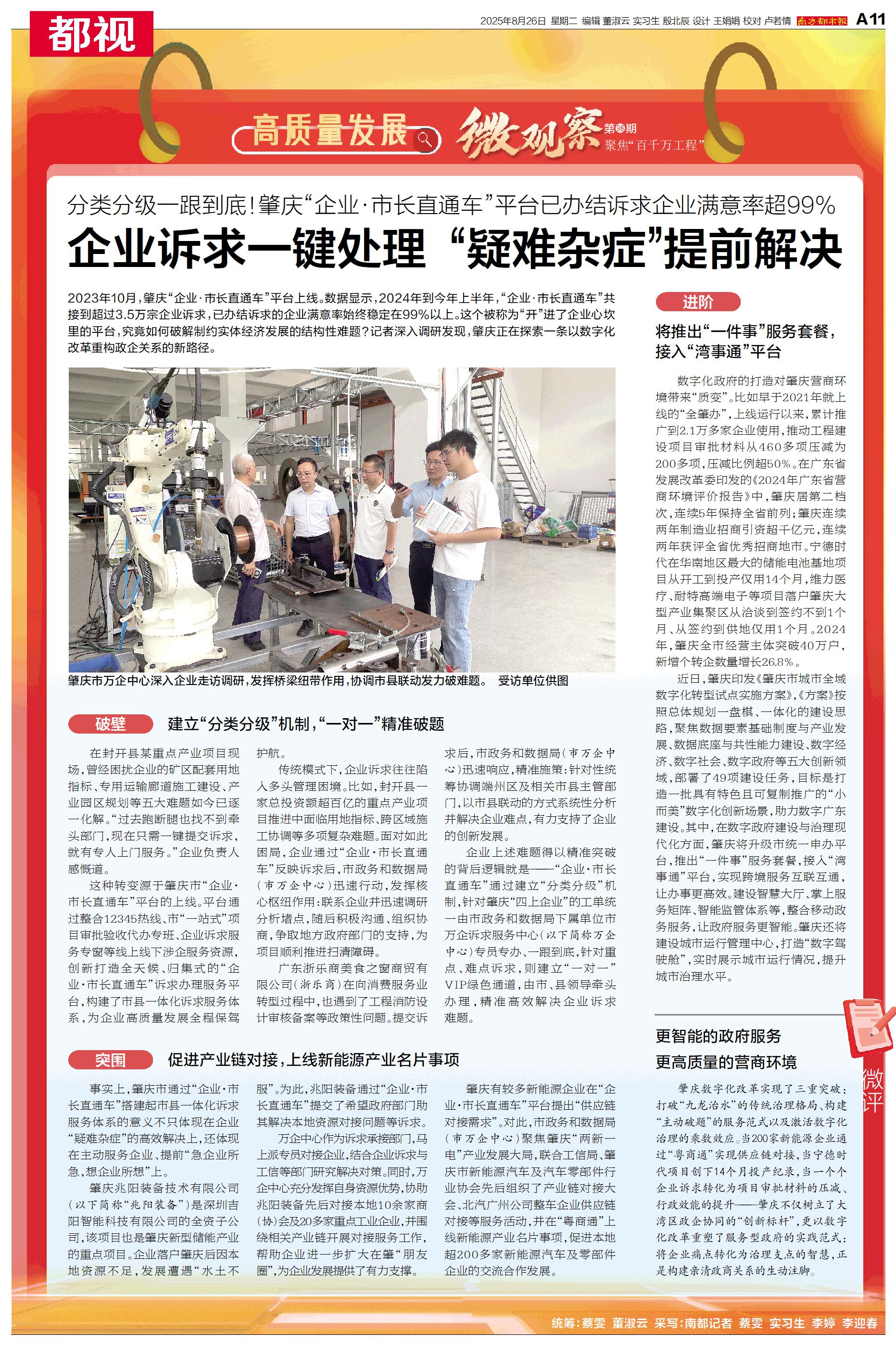2023年10月,肇庆“企业·市长直通车”平台上线。