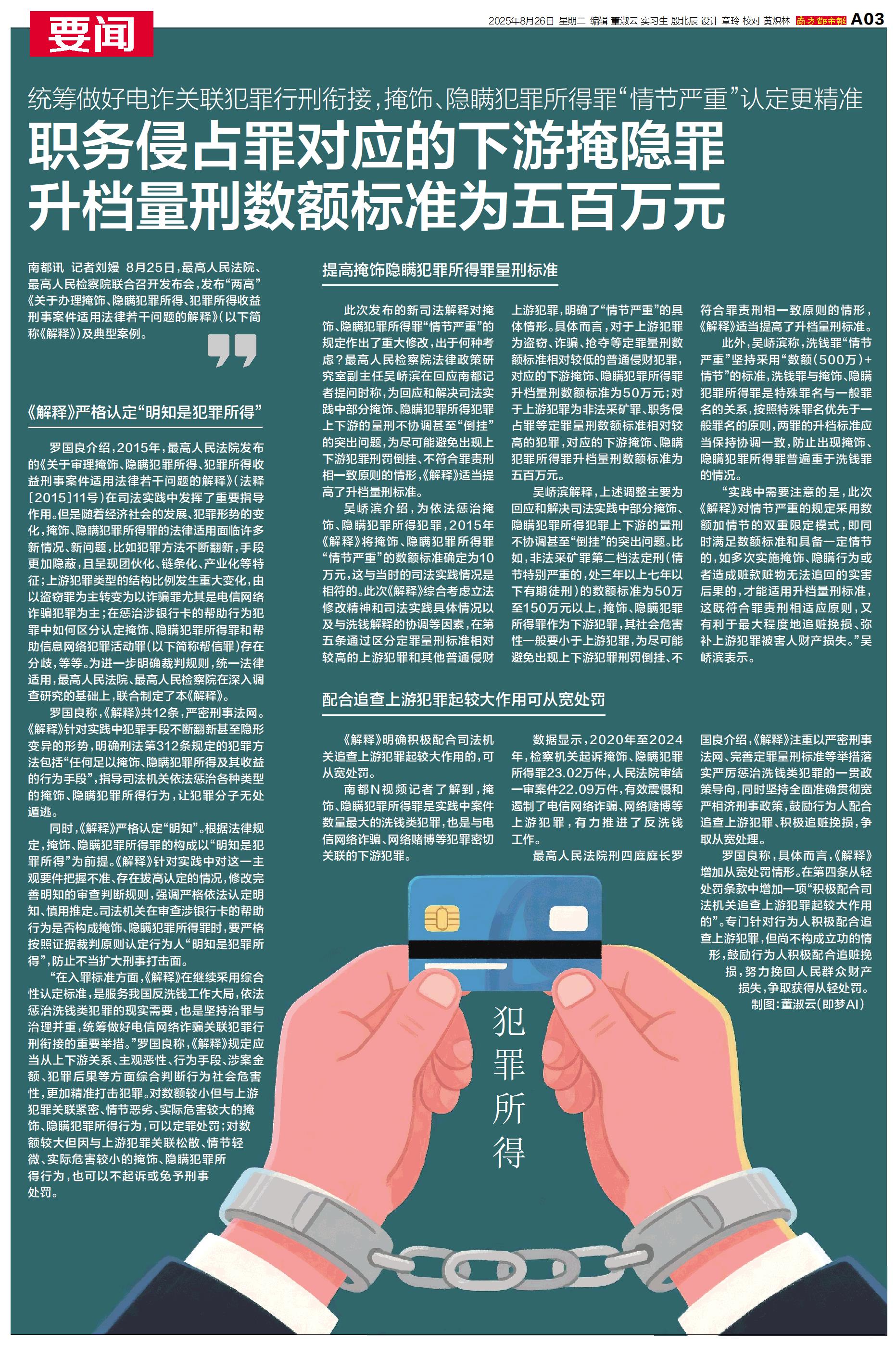 8月25日,最高人民法院、最高人民检察院联合召开发布会,发布“两高”《关于办理掩饰、隐瞒犯罪所得、犯罪所得收益刑事案件适用法律若干问题的解释》及典型案例。