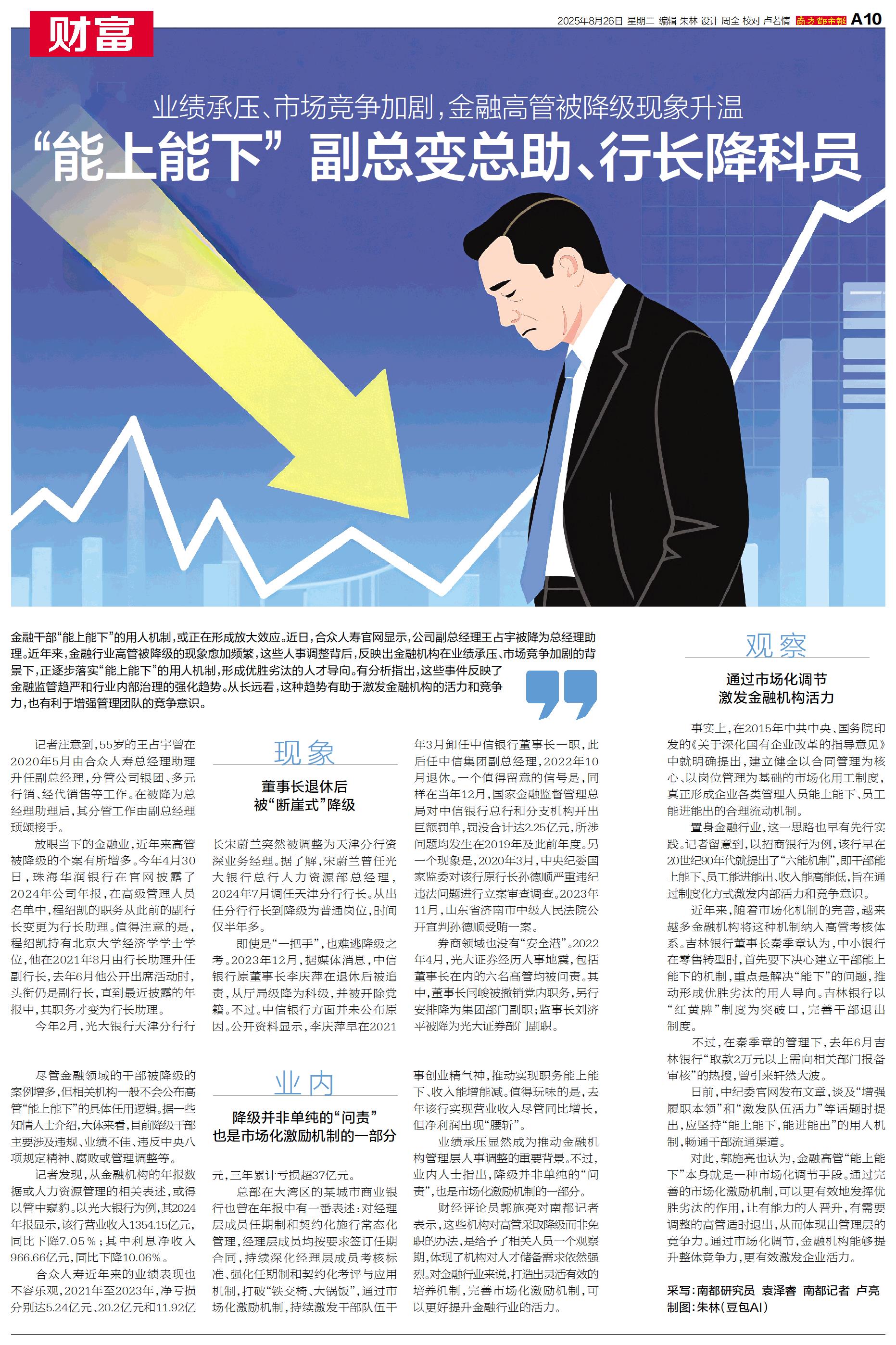 金融干部“能上能下”的用人机制,或正在形成放大效应。