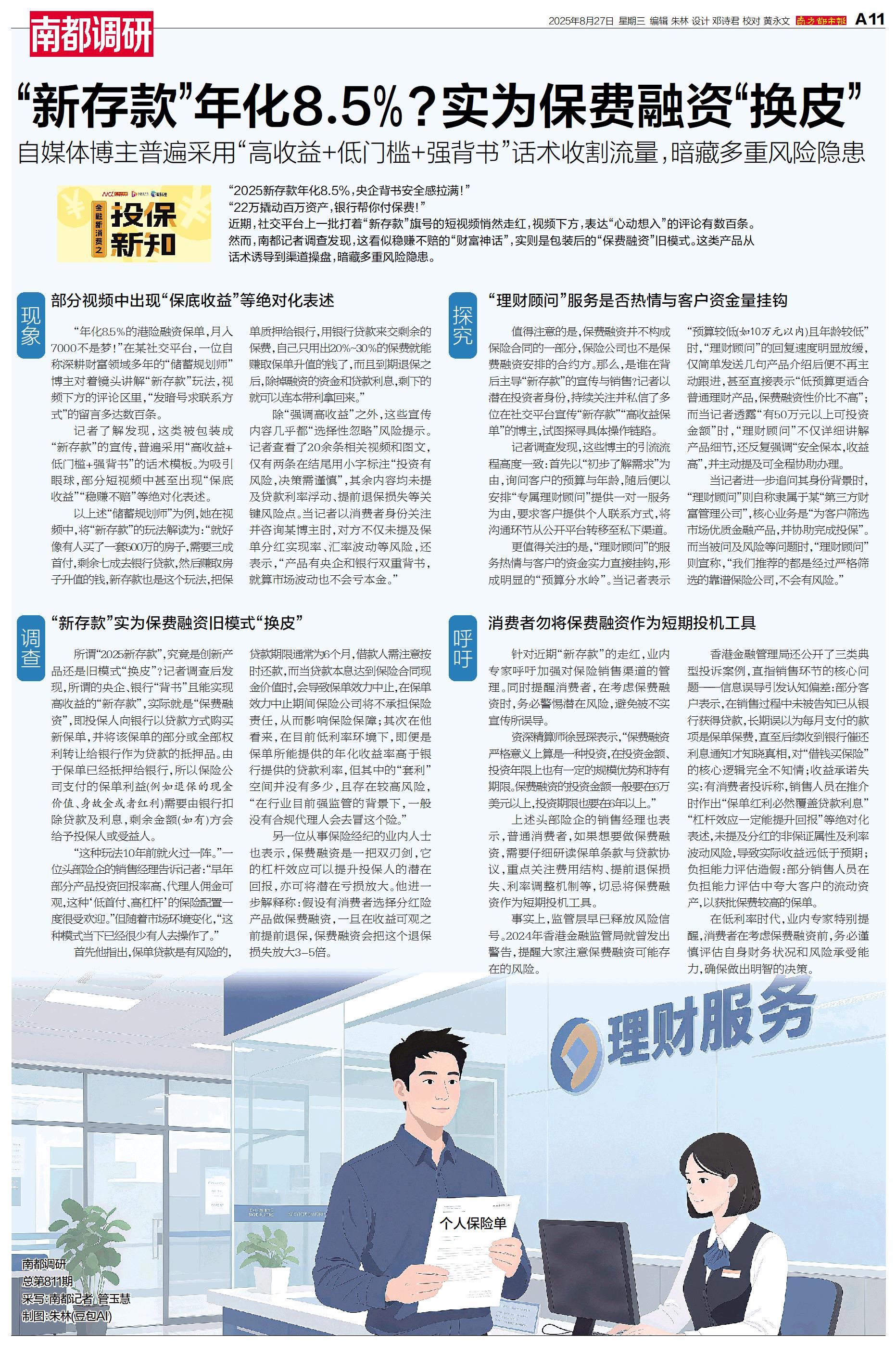“新存款”年化8.5%?实为保费融资“换皮”