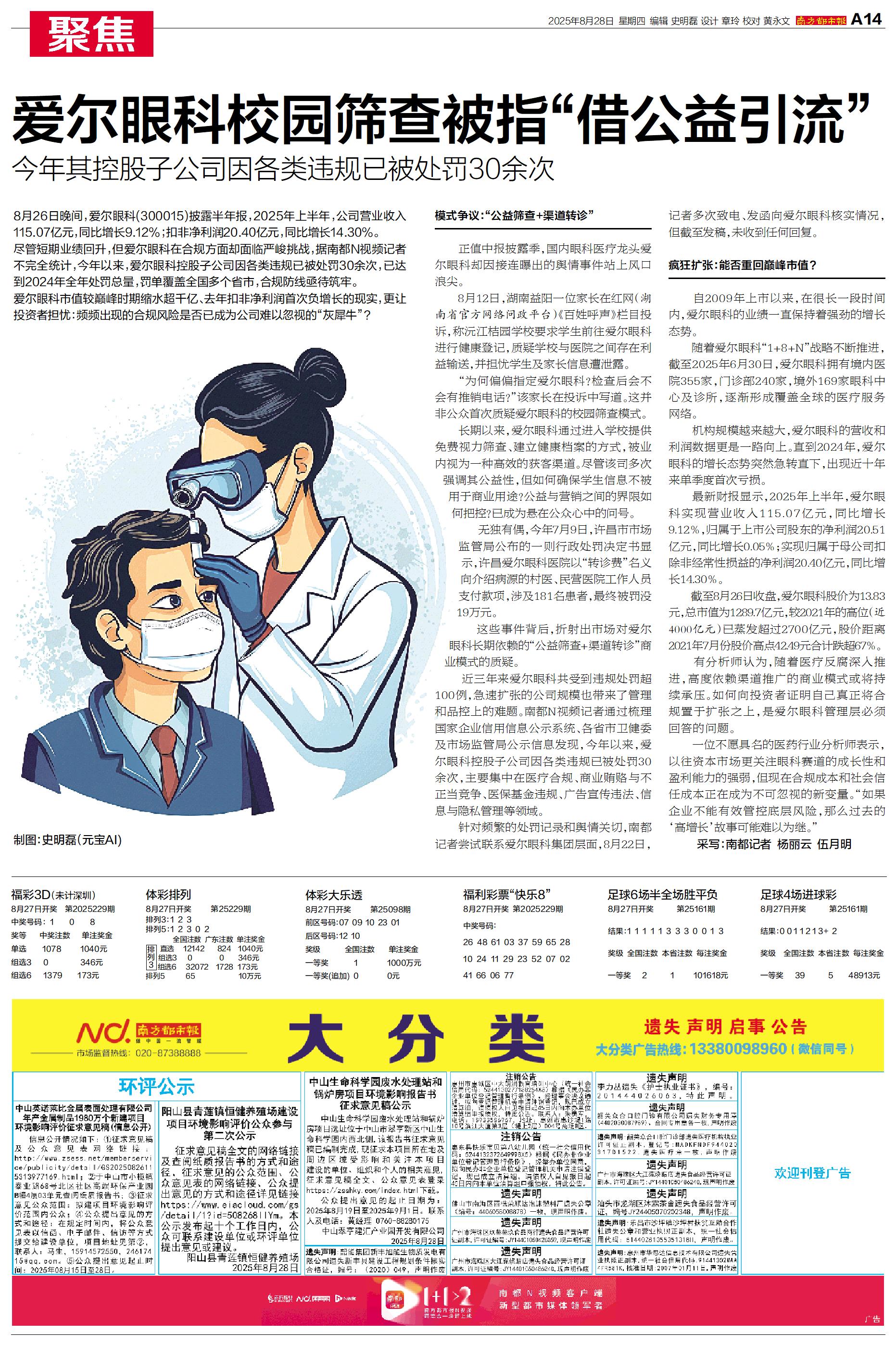 8月26日晚间,爱尔眼科(300015)披露半年报,2025年上半年,公司营业收入115.07亿元,同比增长9.12%;扣非净利润20.40亿元,同比增长14.30%。