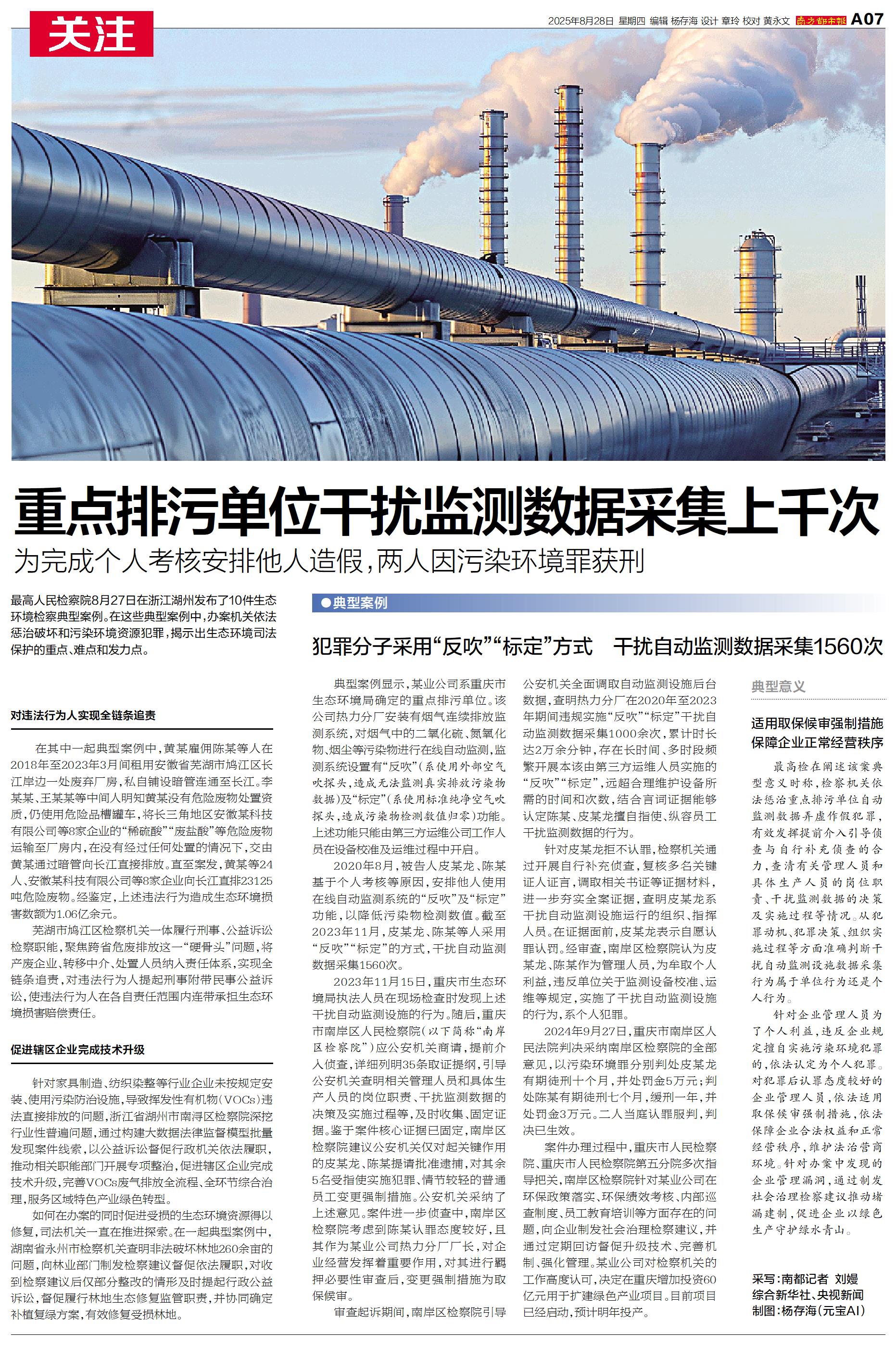 最高人民检察院8月27日在浙江湖州发布了10件生态环境检察典型案例。