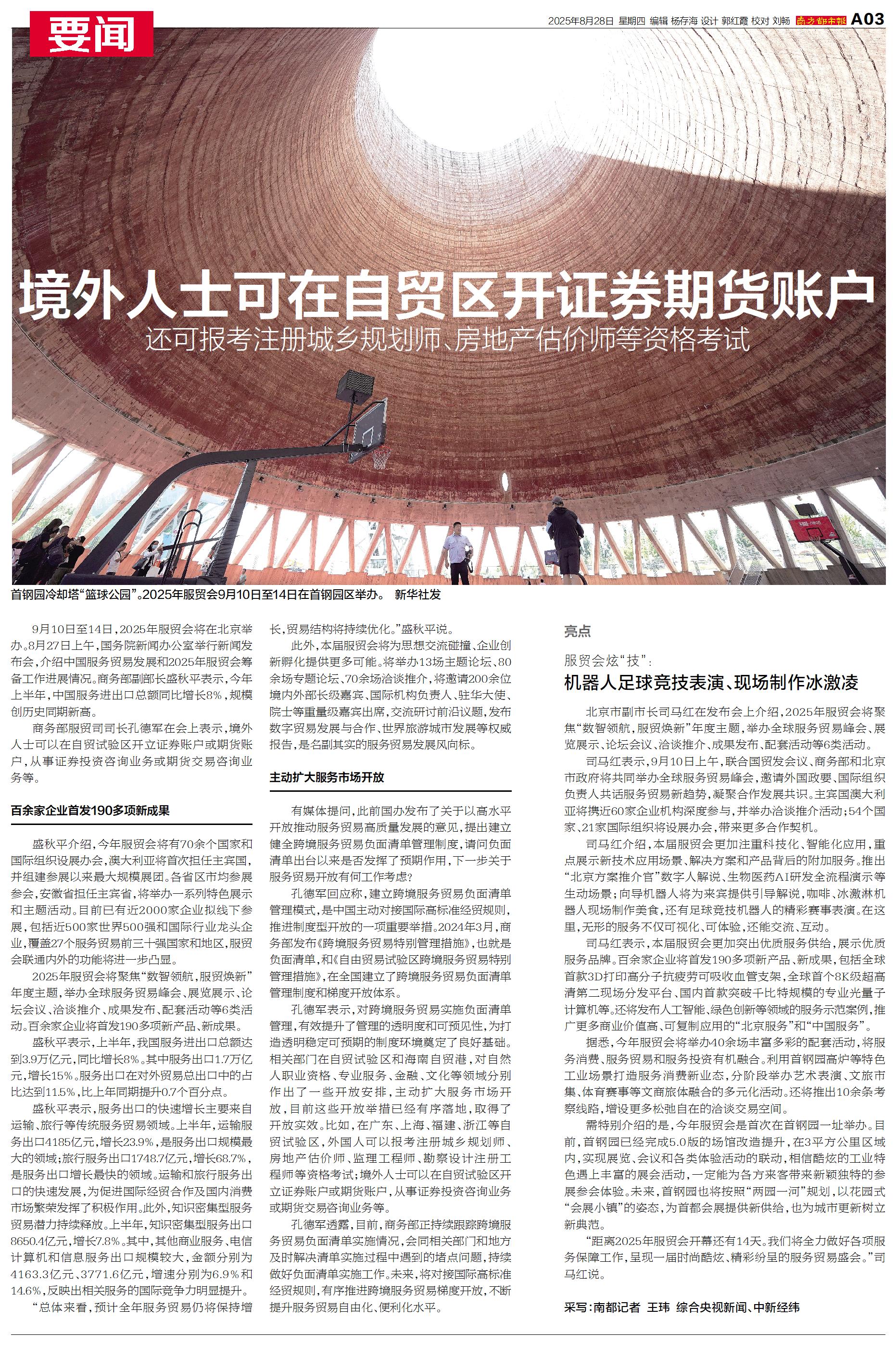 9月10日至14日,2025年服贸会将在北京举办。8月27日上午,国务院新闻办公室举行新闻发布会,介绍中国服务贸易发展和2025年服贸会筹备工作进展情况。