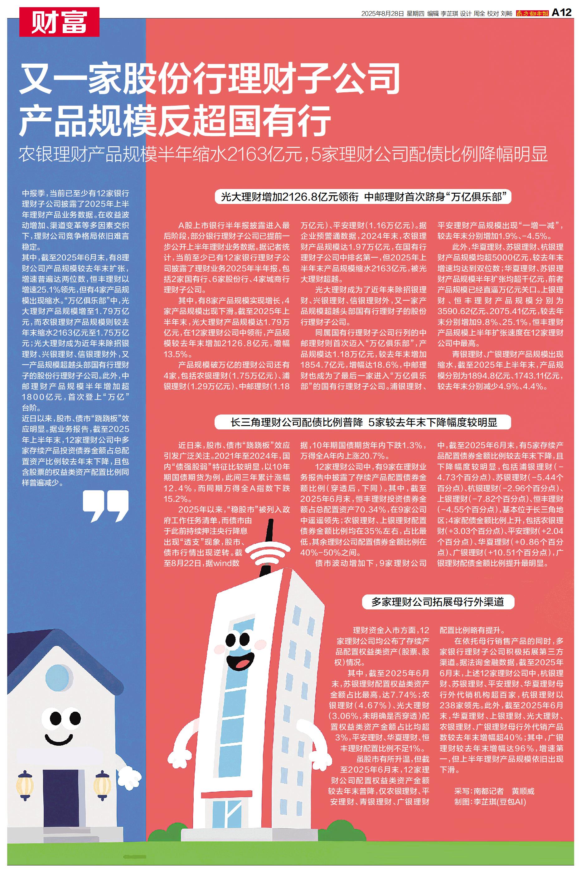 中报季,当前已至少有12家银行理财子公司披露了2025年上半年理财产品业务数据。