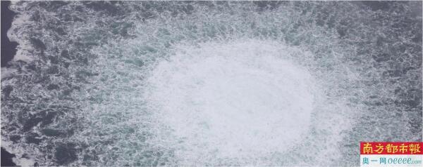 2022年9月28日,瑞典海岸警卫队航拍照片显示,“北溪1号”管道发生天然气泄漏。 IC供图