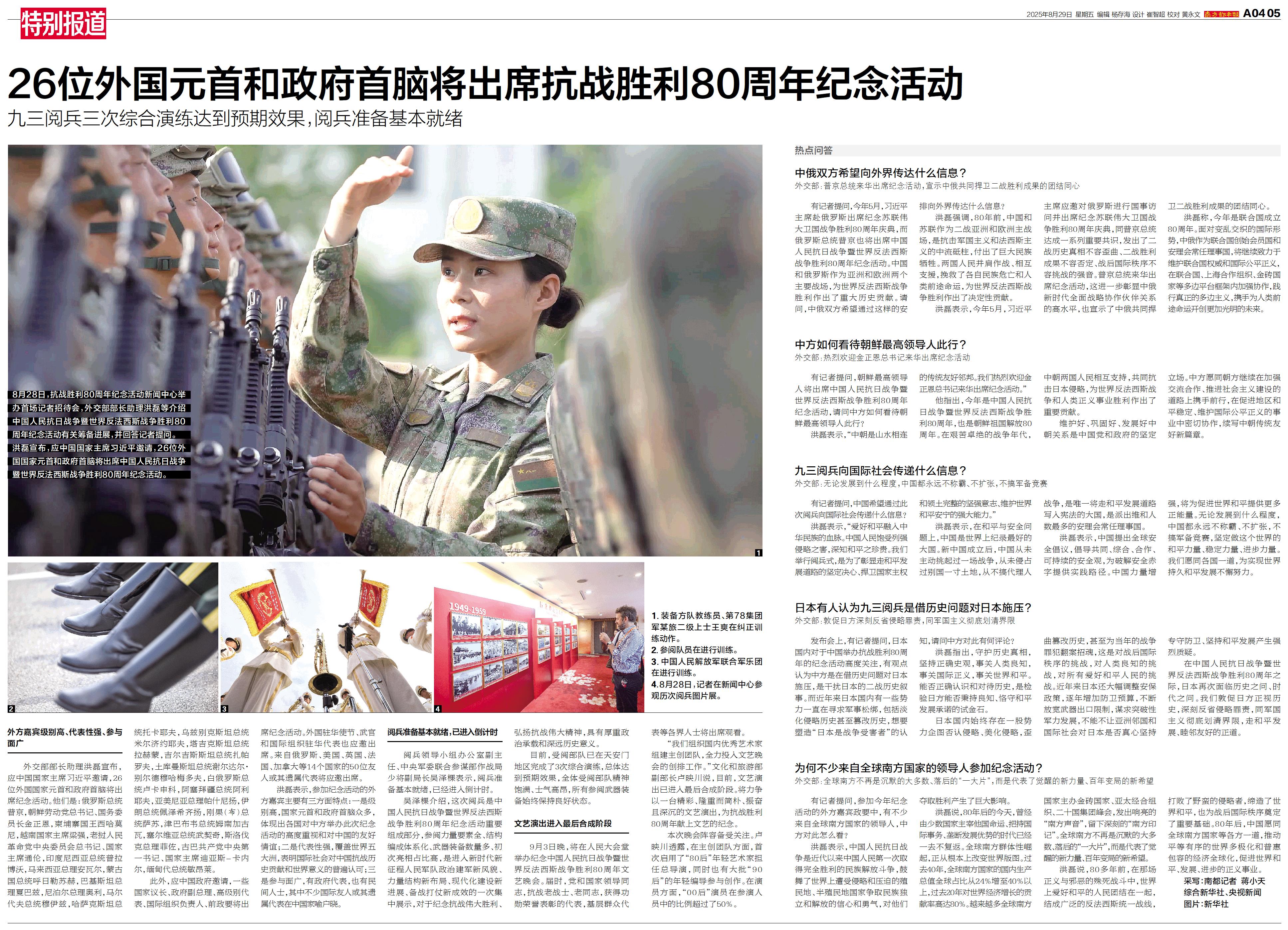 26位外国元首和政府首脑将出席抗战胜利80周年纪念活动