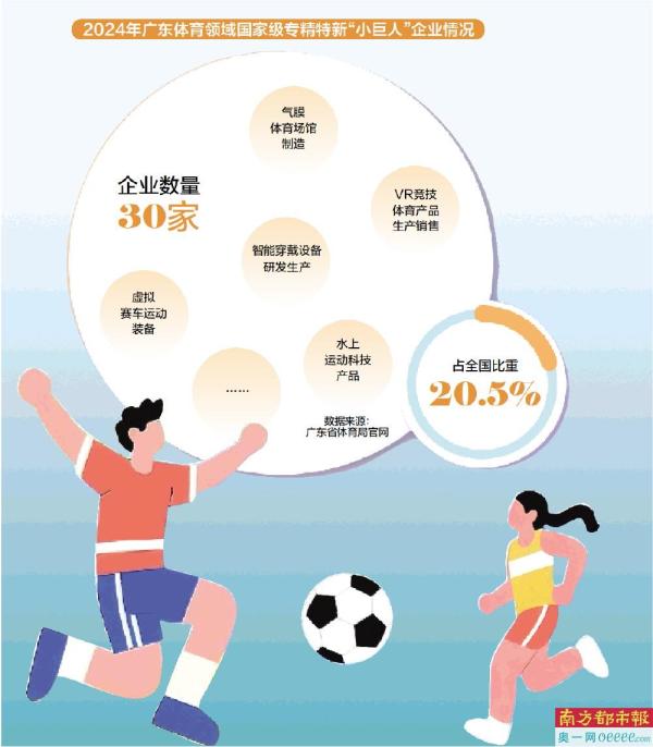 体育消费的热情,直接传导到产业链上游。广东体育产业背后有一批“专业化、精细化、特色化”的体育领域“小巨人”企业强势崛起。2024年,全国146家体育类国家级专精特新“小巨人”企业中广东占30家,占比超20%!