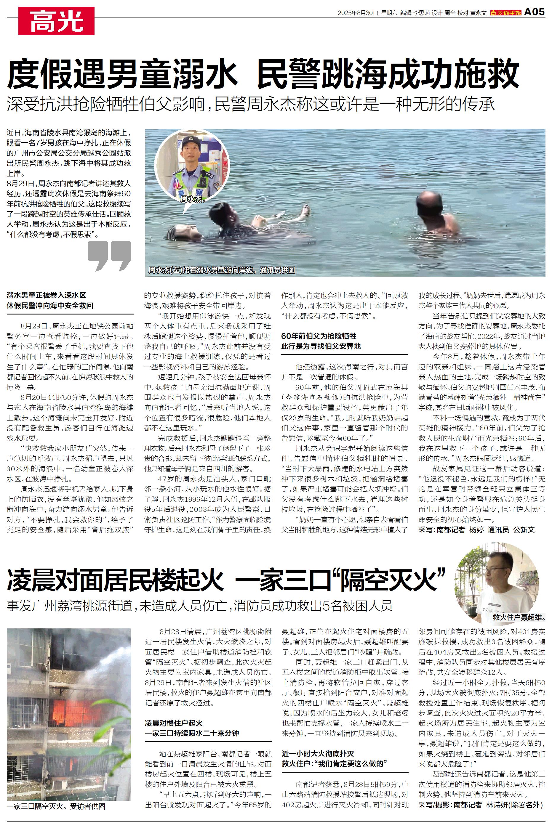 度假遇男童溺水 民警跳海成功施救