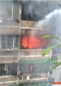 凌晨对面居民楼起火 一家三口“隔空灭火”