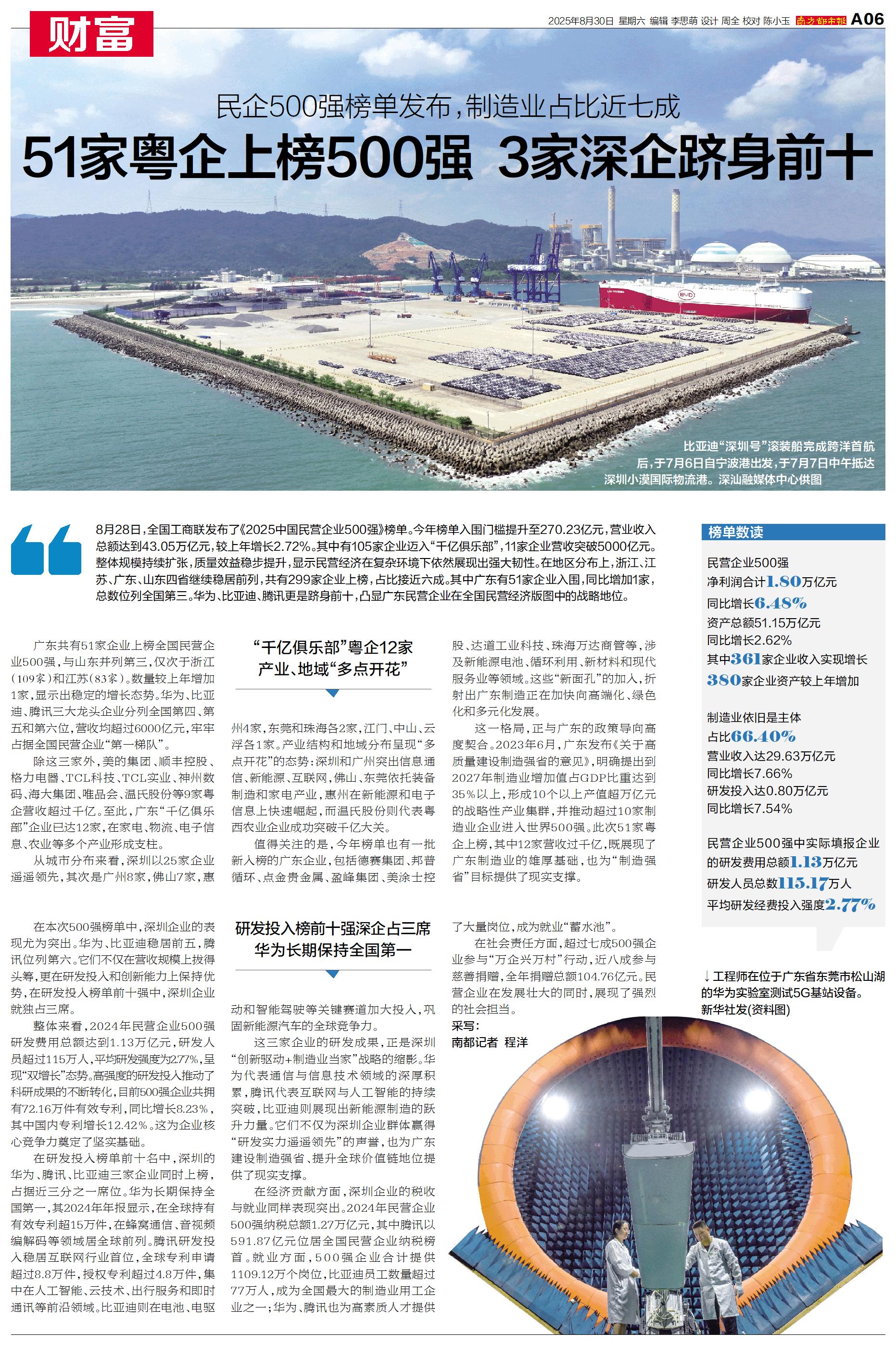 51家粤企上榜500强 3家深企跻身前十