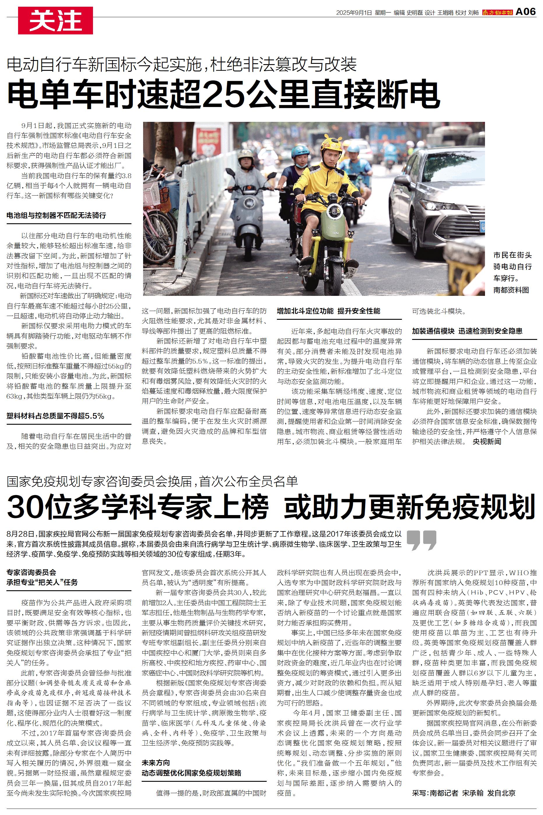 9月1日起,我国正式实施新的电动自行车强制性国家标准《电动自行车安全技术规范》。