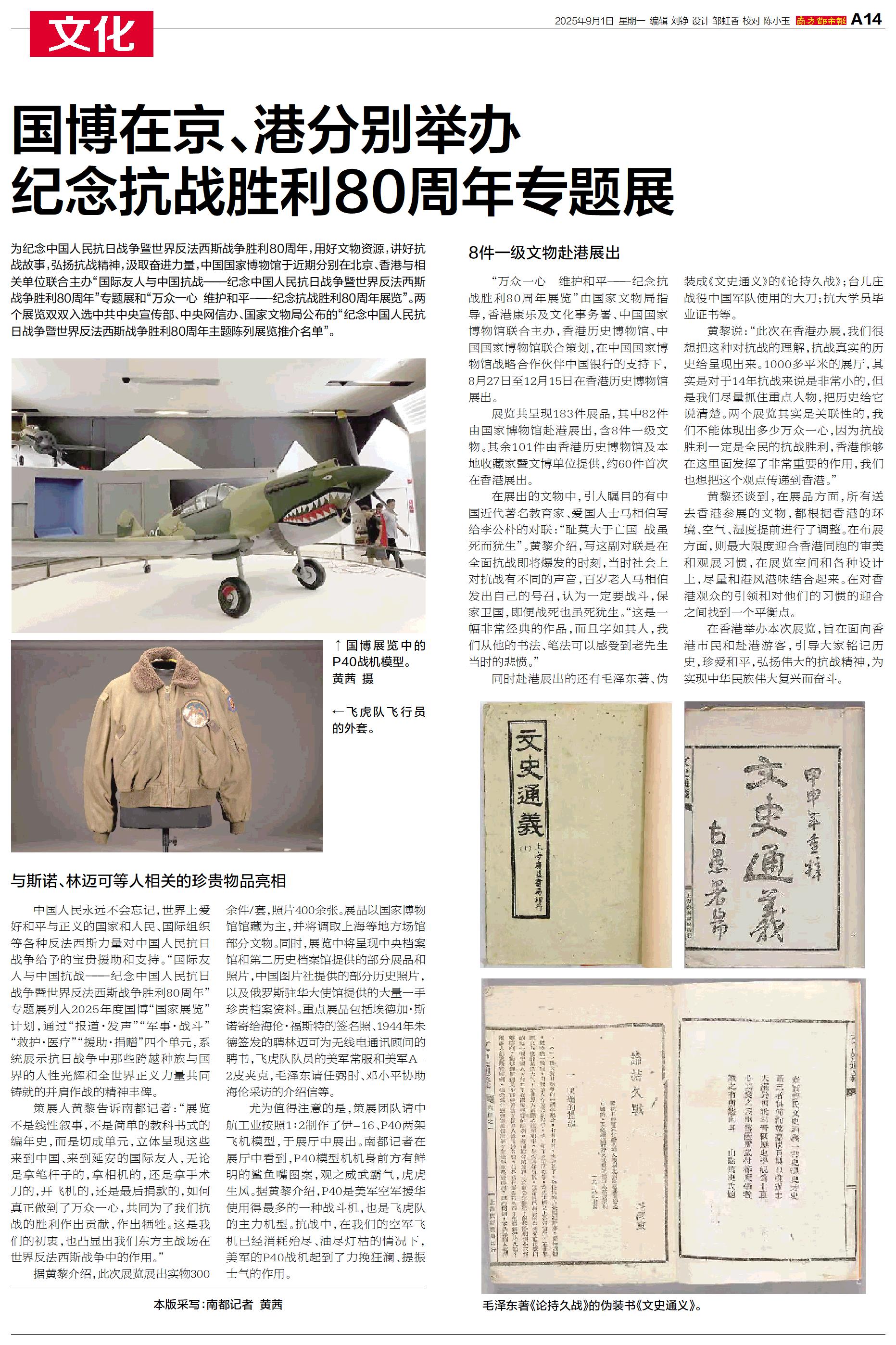 国博在京、港分别举办 纪念抗战胜利80周年专题展