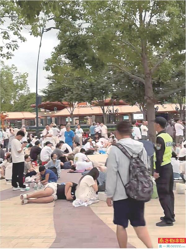 开园时间到来之前,早已疲惫不堪的队伍人群。