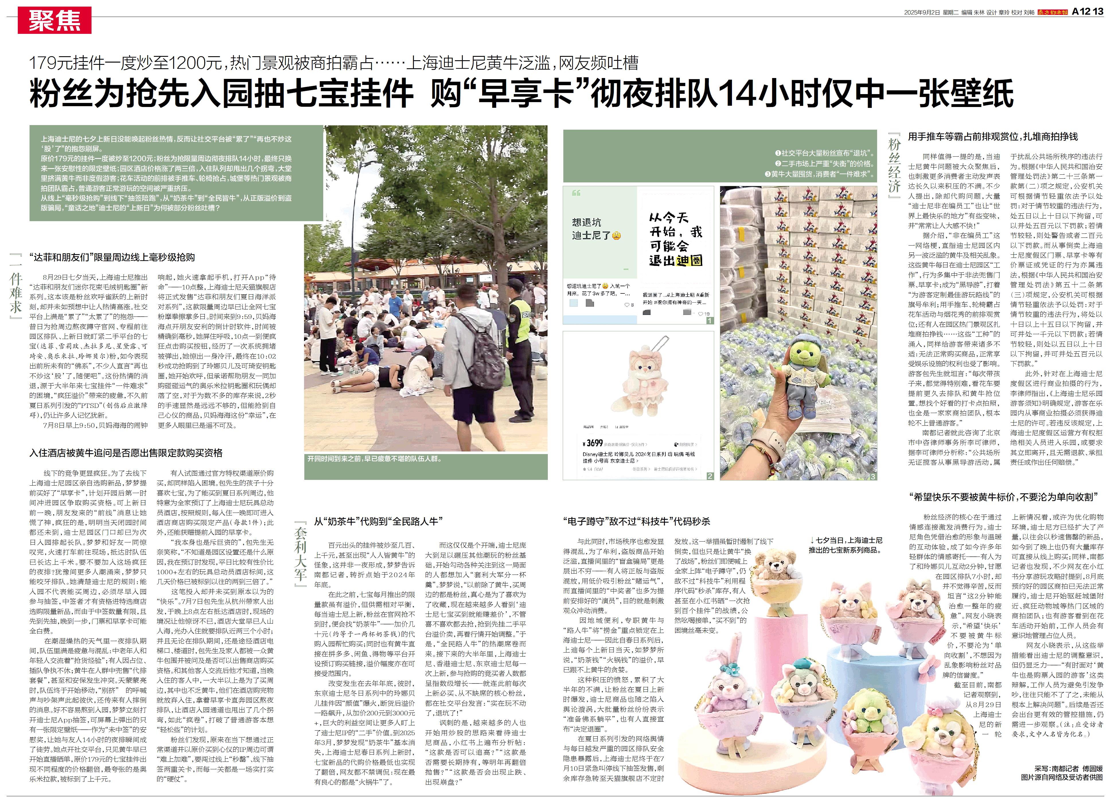 粉丝为抢先入园抽七宝挂件 购“早享卡”彻夜排队14小时仅中一张壁纸