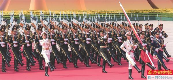 仪仗方队护卫党旗、国旗、军旗,3日上午第一个走过天安门广场,接受祖国和人民检阅。
