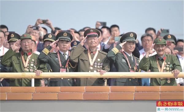 在阅兵仪式期间,多位参加过抗战的老战士老同志颤巍起身,庄严敬礼。