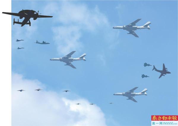 运-9反潜巡逻机、运-9电子侦察机、运-9雷达干扰机作为海军、空军新型特种支援力量首次集体亮相,与6架歼-16战机组成特种机梯队。