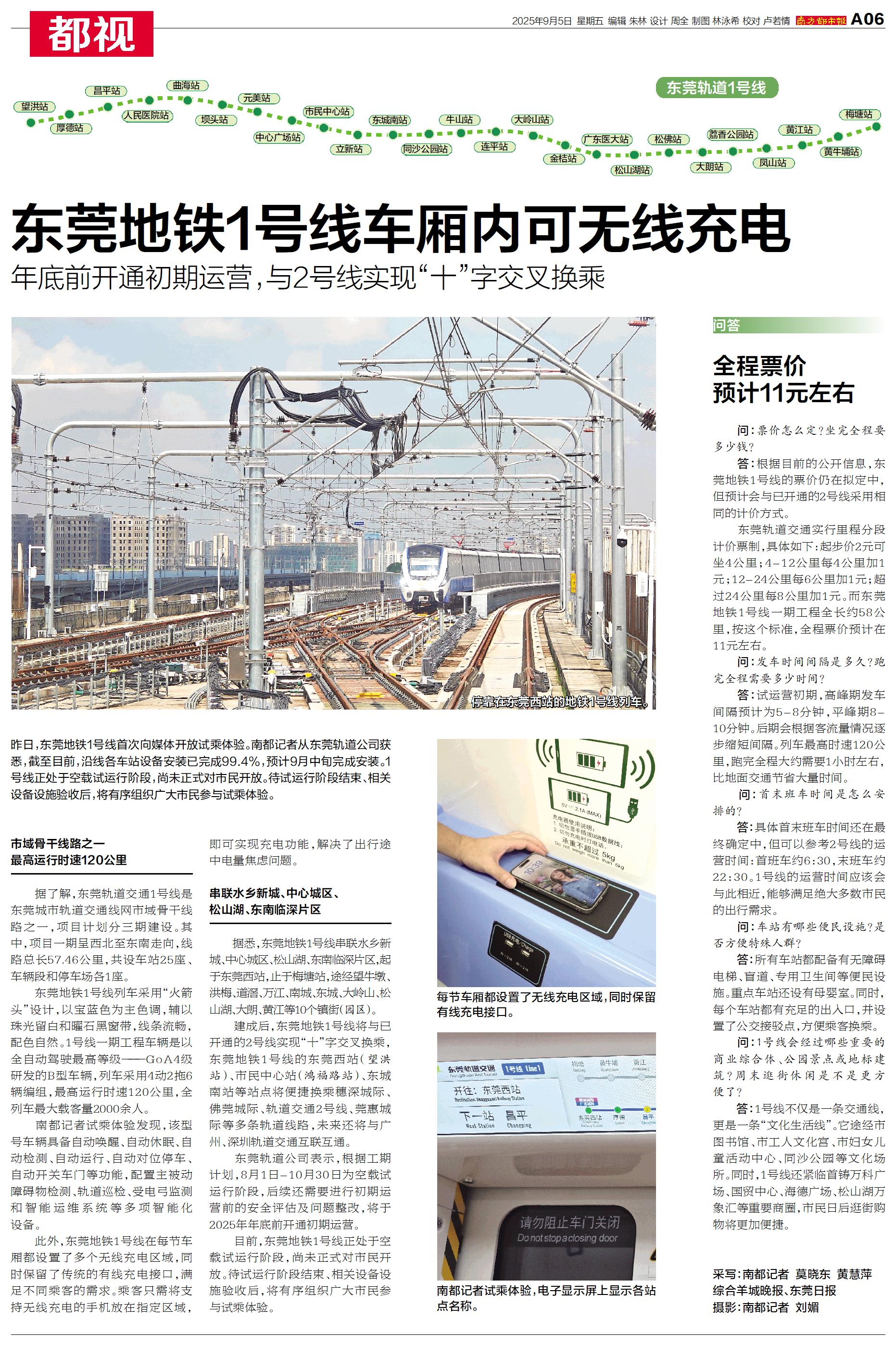 昨日,东莞地铁1号线首次向媒体开放试乘体验。南都记者从东莞轨道公司获悉,截至目前,沿线各车站设备安装已完成99.4%,预计9月中旬完成安装。