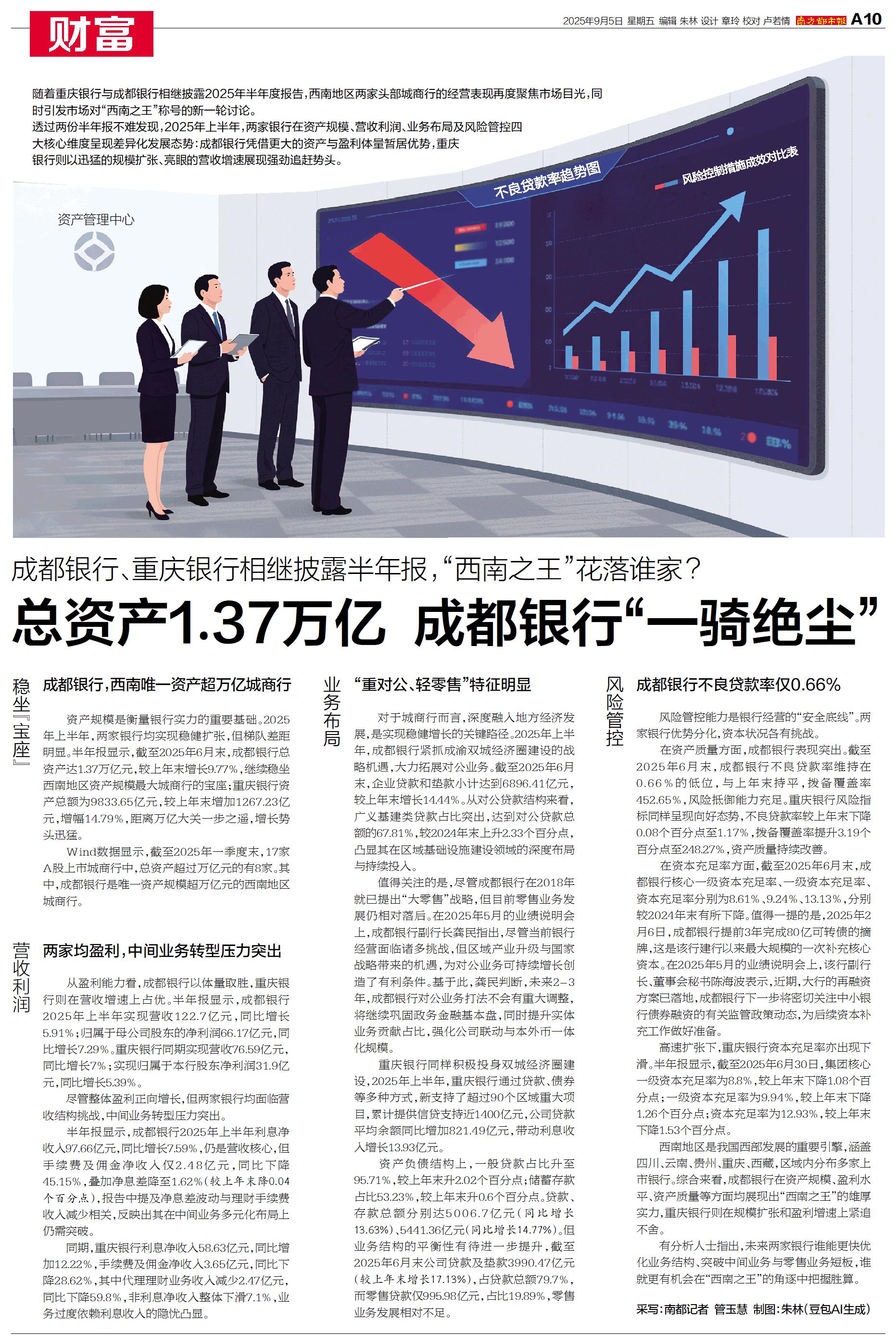 随着重庆银行与成都银行相继披露2025年半年度报告,西南地区两家头部城商行的经营表现再度聚焦市场目光,同时引发市场对“西南之王”称号的新一轮讨论。