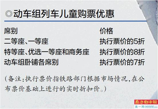 如某趟车次二等座的执行票价为公布票价的8折,儿童优惠票将再打5折,相当于公布票价的4折。