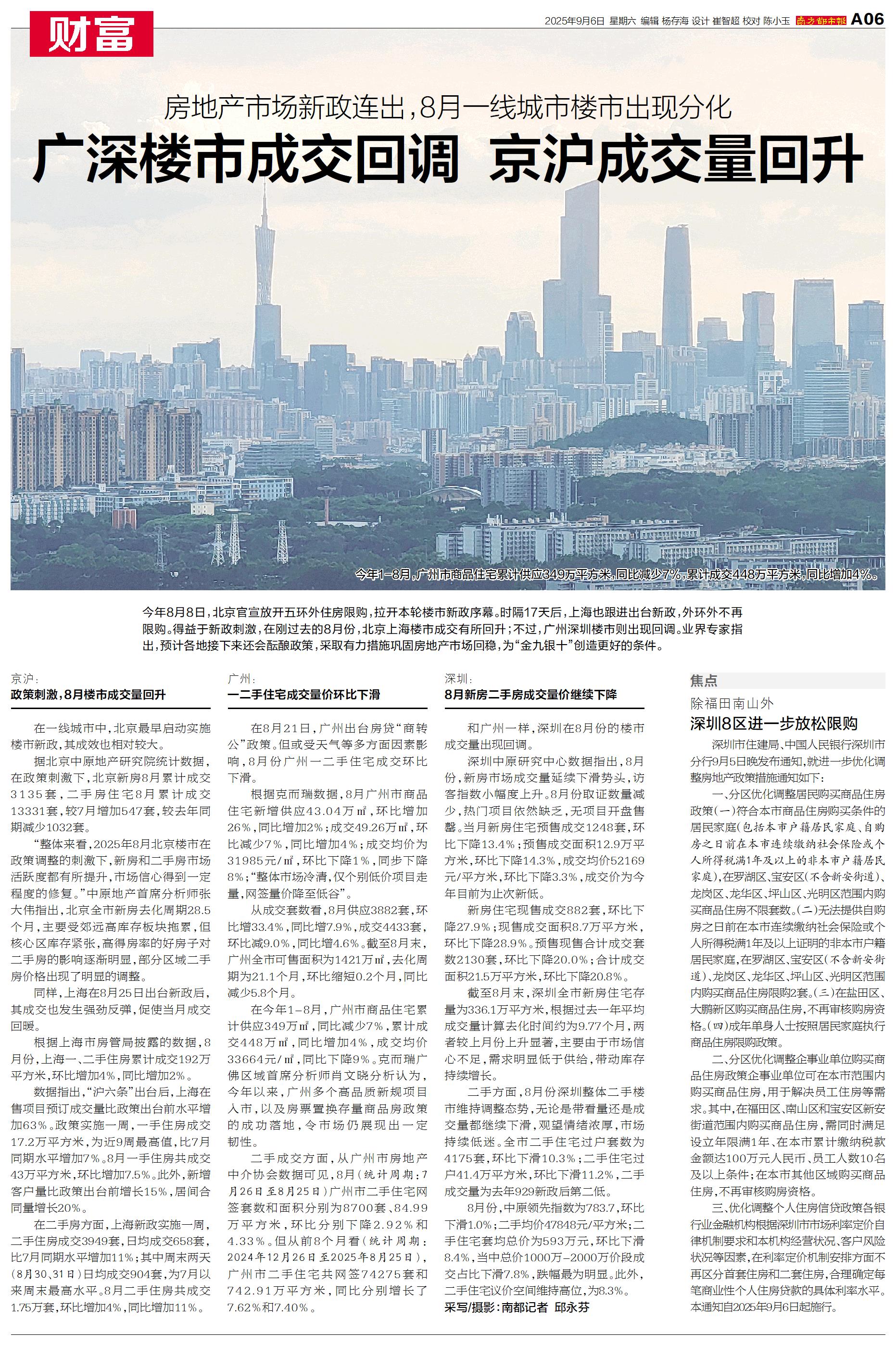 广深楼市成交回调 京沪成交量回升