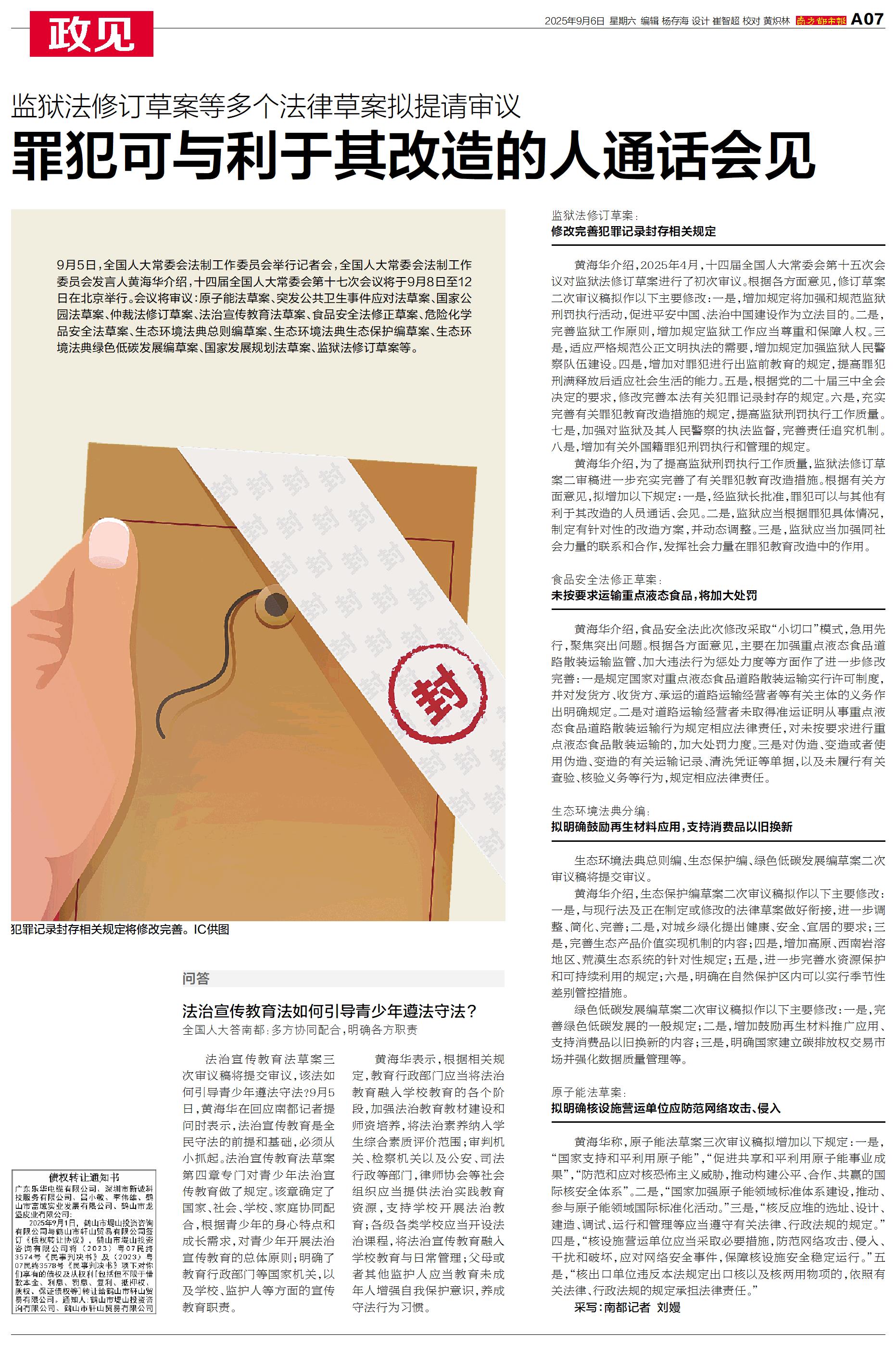 9月5日,全国人大常委会法制工作委员会举行记者会,全国人大常委会法制工作委员会发言人黄海华介绍,十四届全国人大常委会第十七次会议将于9月8日至12日在北京举行。会议将审议:原子能法草案、突发公共卫