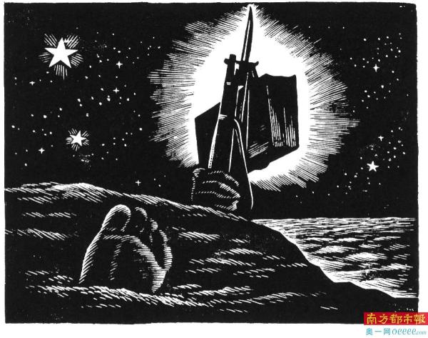 黄新波在桂林和鹰山时期创作的木刻版画《心曲》系列也尤为引人注目。在桂林和鹰山时期的这批木刻版画如此沉静,画面中常有寂静的长夜、星空、大海、山川和旷野。人物在这样的自然中时而非常渺小,时而如巨人般高耸。彷徨或坚定的青年常望向它们,行进的队伍、相逢的旅人、失散的孩童也在其中。